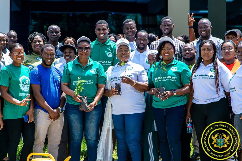 As part of this year’s ‘Green Ghana Day’, the Minister for Gender, Children and Social Protection (MoGCSP), Madam Hajia Lariba Zuweira Abudu led the Management and Staff of the Ministry to participate in the tree planting exercise.