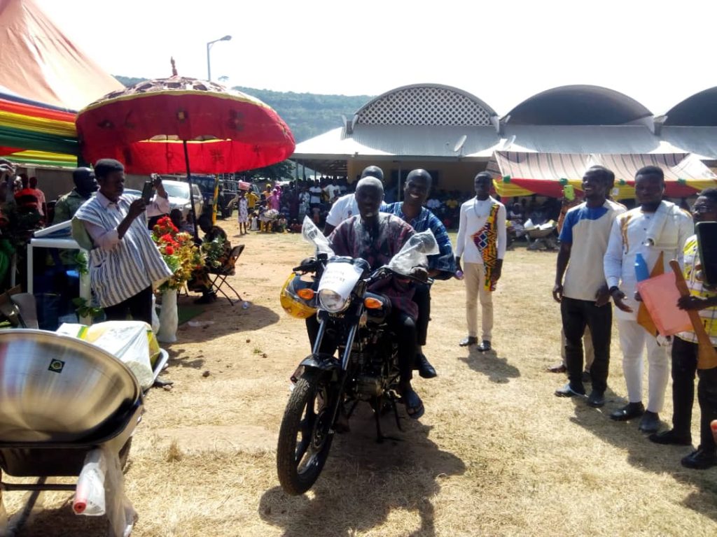 He was awarded a motorbike, wheelbarrow, watering tank, Nacksack sprayer, 6 pieces of cutlasses, 3 sets of Wellington boots, a radio set and a certificate.