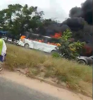 A Wesley Grammar school bus carrying students reportedly caught fire at the Kasoa Tollbooth enroute Ngleshie Amanfrom on Friday, November 28. School passengers aboard the bus managed to flee for their lives.