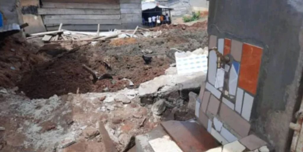 The pit was created by illegal miners in the Asante Akyem Central Municipality and is one of several similar underground holes constructed beneath residences in the area.