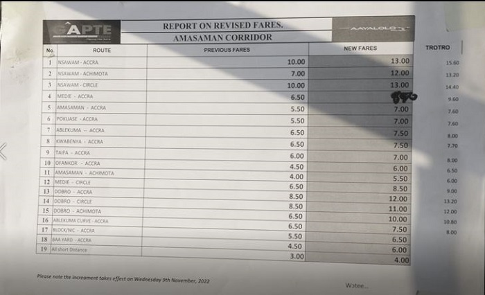 One passenger who commutes from Amasaman to Accra said “At first I used to stand by the road to pick up trotro from Amasaman to Accra and the fare was GH5.50p and Aayalolo was GH4.50p but right now, from Amasaman to Accra is Gh7.00 for Aayalolo and commercial vehicle (trotro) is GH7.60p.