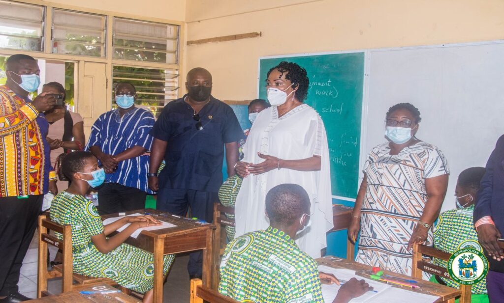 The Chief Executive of the Accra Metropolitan Assembly (AMA), Hon. Elizabeth Kwatseo Sackey has toured some Basic Education Certificate Examination (BECE) centres in the Accra Metropolis to enable her to assess the conditions under which the students were writing the exams.