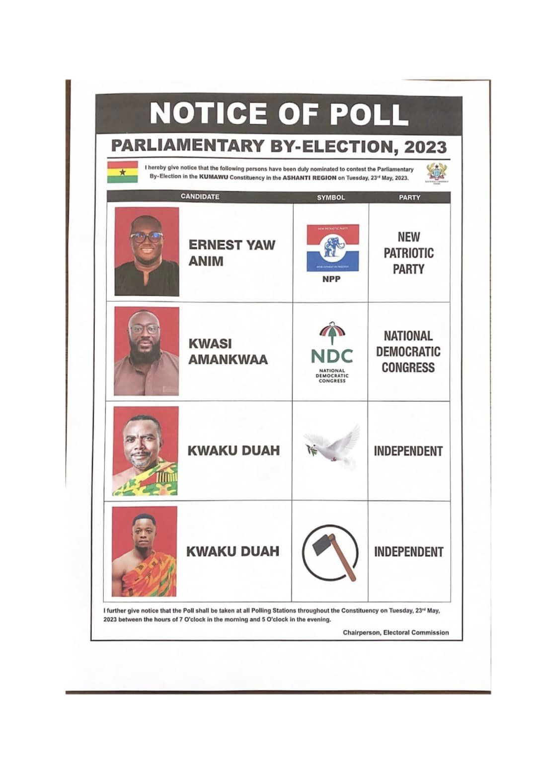 A total of 34,800 registered voters in Kumawu Constituency will head to the polls today, May 23, 2023, to elect a new member of parliament.