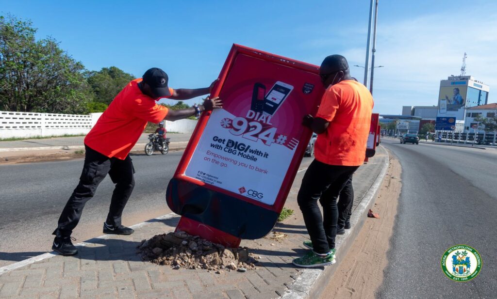According to the Metropolitan Chief Executive of Accra who sanctioned the exercise, no institution or religious body had been given a permit to mount signages in medians within the AMA’s jurisdiction.