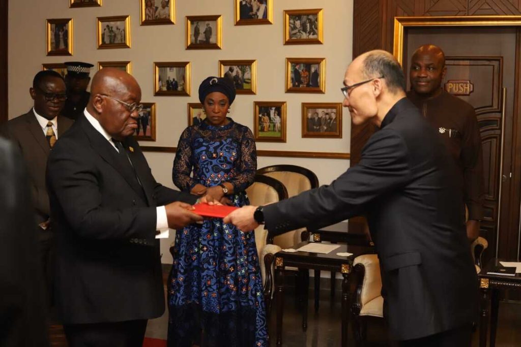 H.E. TONG Defa, Ambassador of the People’s Republic of China, on Thursday, August 15, 2024, presented the Letter of Credence to H.E. Nana Addo Dankwa Akufo-Addo, President of the Republic of Ghana.