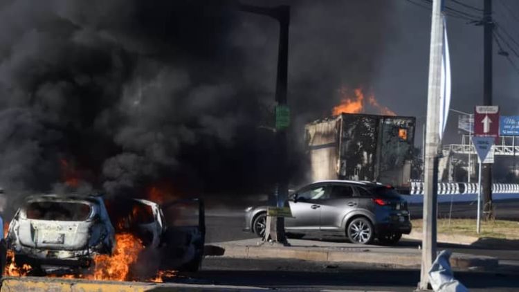 Dozens of vehicles were set alight and at least two planes at Sinaloa airports were hit by gunfire, in attacks blamed on the Sinaloa cartel. More than 100 flights were cancelled at local airports as a result.
