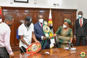 Ghanaian International featherweight boxer Emmanuel Tagoe paid a courtesy call on Speaker of Parliament, Rt. Hon. ASK Bagbin.