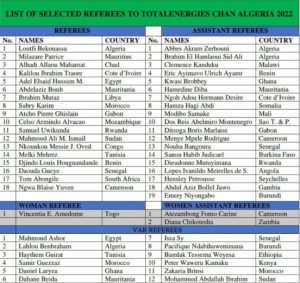 Three females from three different African countries are also named by CAF, with Vincentia Amedome from Togo, as the only female centre referee.