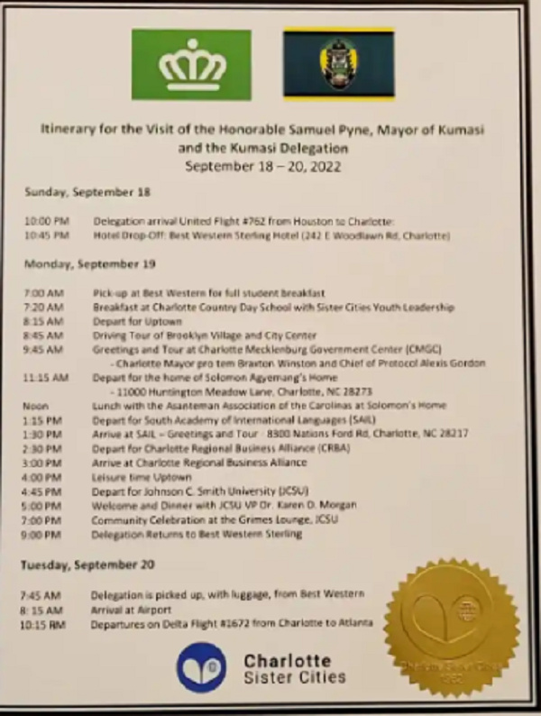 “We’ve chosen to mark September 19, 2022, as ‘Kumasi Day’ here in Charlotte. It is our pleasure to have the Mayor of Kumasi come to grace this memorable occasion.”