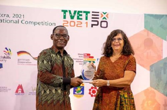 The Commission for Technical and Vocational Education and Training (CTVET) has awarded GIZ Ghana for its overall contribution to the accomplishment of the Commission’s mandate as well as the general achievement of the National Strategic Goals of the sector set up by the Government within the period under review.