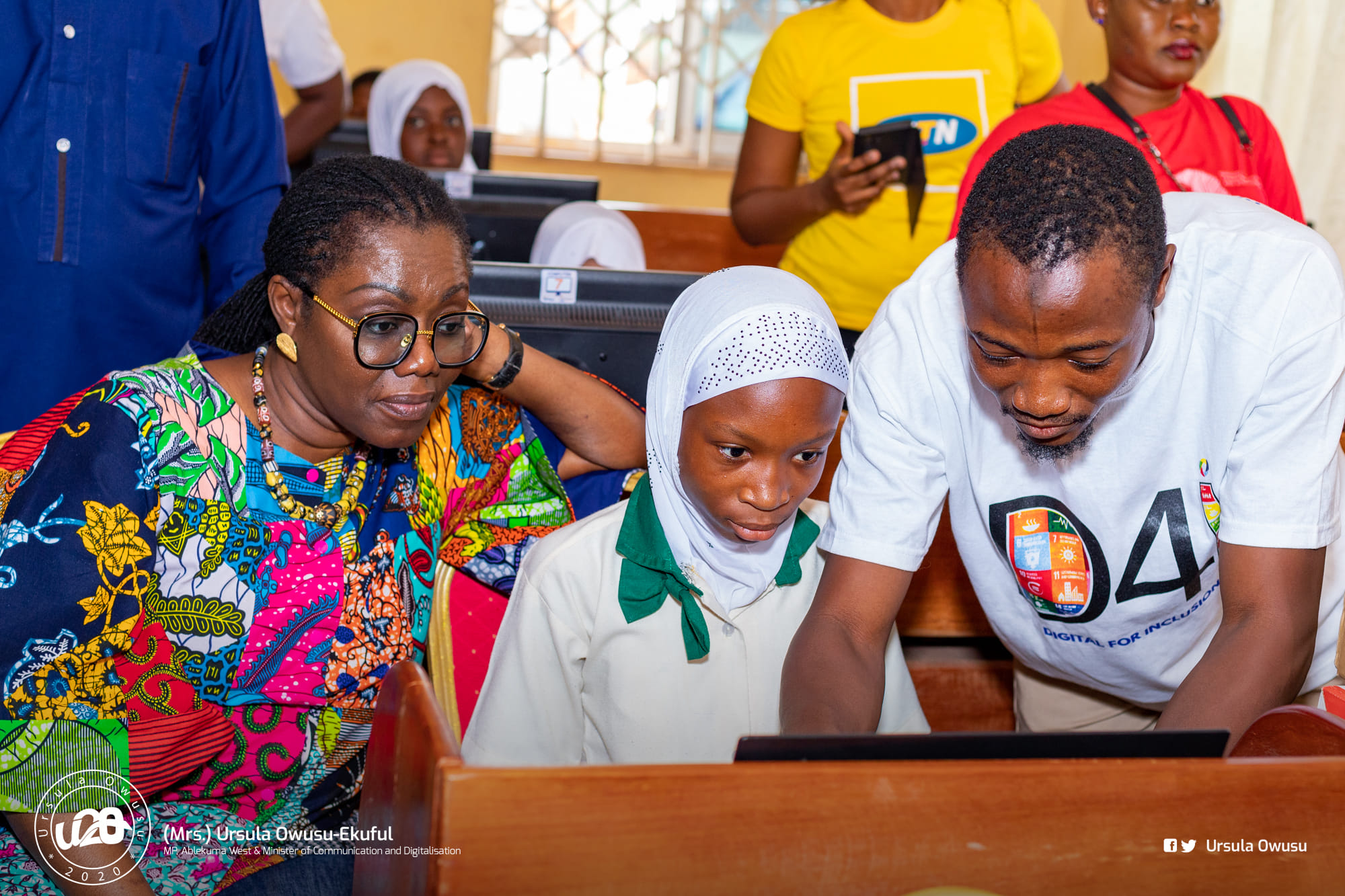 The Minister for Communications and Digitalisation (MoCD), Mrs. Ursula Owusu-Ekuful, paid a working visit to the Girls-In-ICT Training Centres in Tamale, Northern Region, on Saturday, 29 July, to assess and inspect the training processes of the ongoing Girls-in-ICT project in the Region.