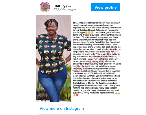 Although she hasn’t mentioned any name, most people believe the shots are directed at Stonebwoy.
