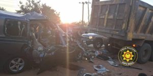 The collision involved a grey Toyota Noah minibus with registration number GX 422-25 and a tipper truck bearing registration number GT 725-19.