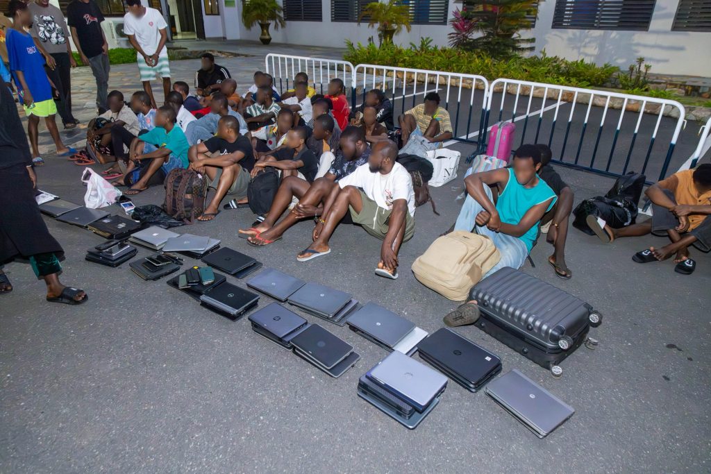 During the operation, police retrieved seventy-seven (77) assorted laptops, thirty-eight (38) mobile phones, two (2) vehicles, three (3) television sets, and other internet-enabled devices suspected to have been used in committing the crimes.