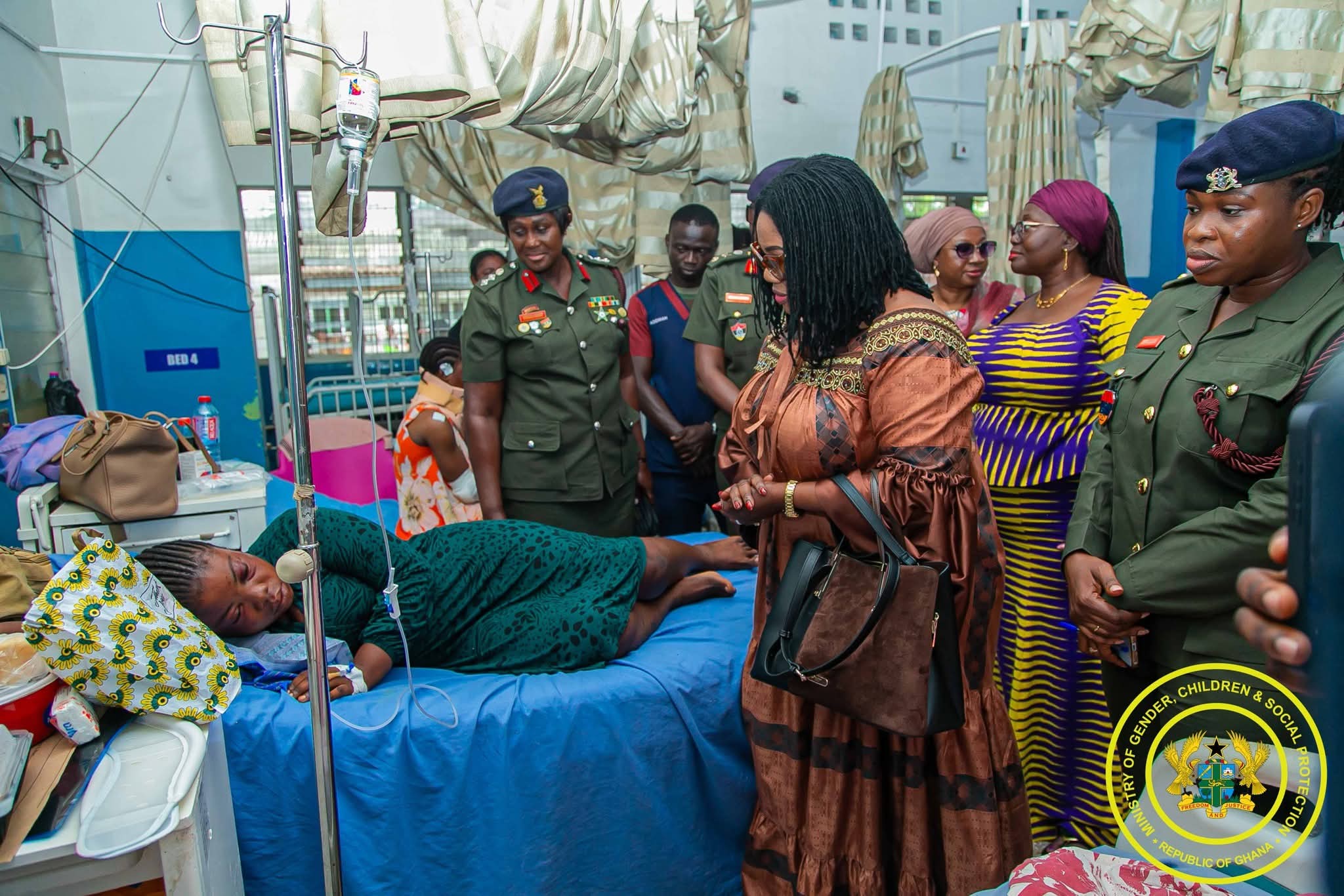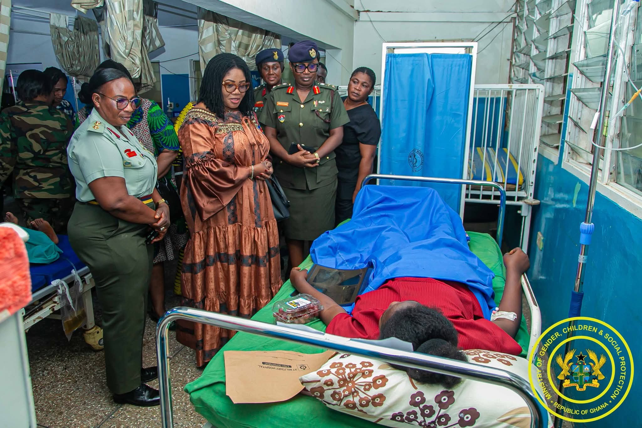 On Thursday 13th November 2025, the Minister for Gender, Children and Social Protection, Hon. Dr. Agnes Naa Momo Lartey, visited the 37 Military Hospital to sympathize with victims who sustained injuries in a stampede that occurred during the Ghana Armed Forces (GAF) recruitment exercise at the El-walk Stadium.