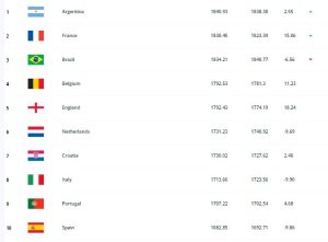 Meanwhile, 2022 World Cup winners, Argentina have been ranked as the number one country in the world, with second-placed France occupying the second position, taking off Brazil.
