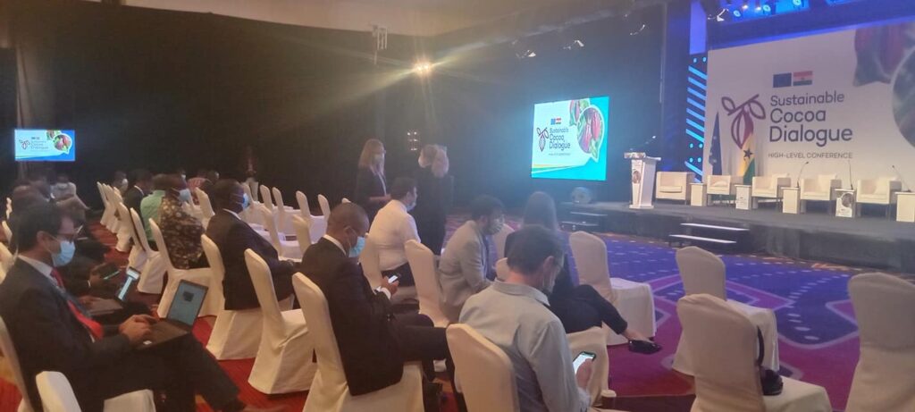 Present at the Conference is the European Union Ambassador to Ghana, H.E Diana Acconcia, Mrs. Jutta Urpilainen, the Minister for Employment and Labour Relations, Hon. Ignatius Baffour-Awuah, the Minister for Agricultura, Dr. Owusu Afriyie Akoto, European Commissioner for International Partnerships, the CEO of Cocoa Board, Joseph Boahen Aidoo and some dignitaries from the Cocoa sector initiative and Cocoa Farmers Organisation.