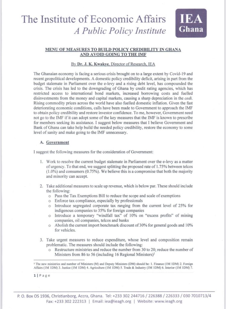 In a statement issued on Friday March 18, Dr Kwakye said, “Take urgent steps to reduce expenditure whose level and composition remain problematic.