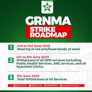 The GRNMA has announced a phased withdrawal of Out-Patient Department (OPD) services nationwide from June 4 to June 8, 2025.
