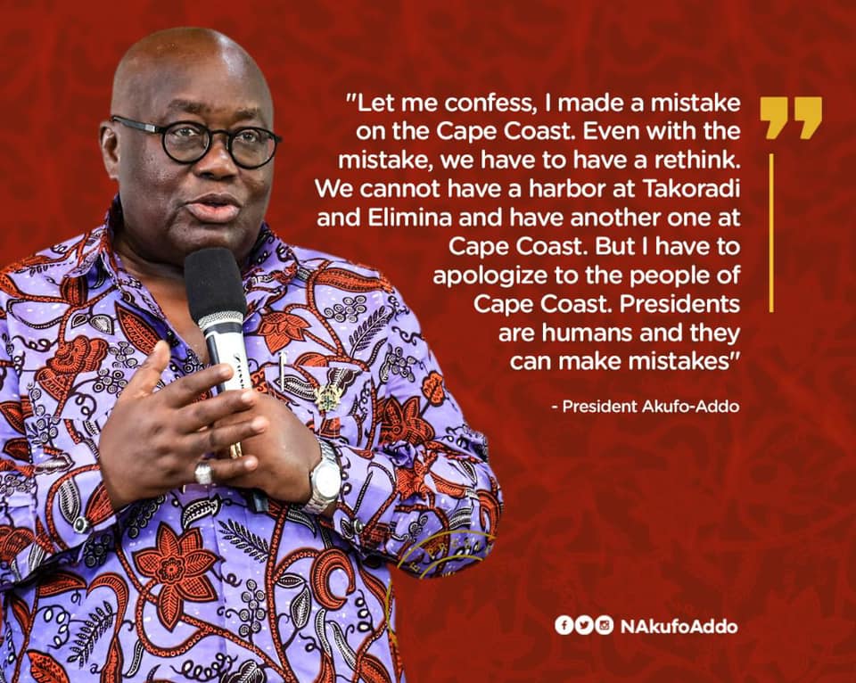 The President of Ghana, Nana Addo Dankwa Akufo-Addo has admitted that he made a mistake when he said his government never promised a habour for the people of Cape Coast in the Central Region of Ghana.
