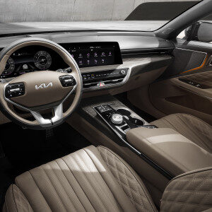 The K8 interior also debuts a new steering wheel design from Kia and the company’s contemporary new logo that expresses ‘symmetry’, ‘rhythm’ and ‘rising’ elements, embodying Kia’s confidence and renewed commitment to customers.