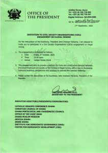 President John Dramani Mahama has extended an invitation to Civil Society Organisations (CSOs) for a high-level engagement on the pressing issue of illegal mining, popularly known as galamsey.