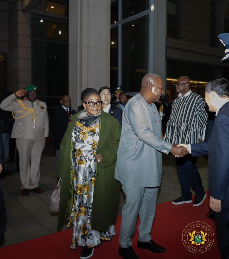 President John Dramani Mahama and First Lady Lordina Mahama have arrived in Beijing, China, for a state visit aimed at strengthening diplomatic and economic relations between Ghana and China.