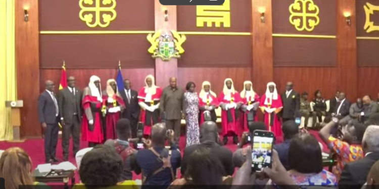 President John Dramani Mahama urged newly appointed justices of the Supreme Court to remain unwavering in their commitment to integrity, fairness, and impartiality, reminding them of the solemn oath they had taken to serve the people of Ghana with honour and distinction.