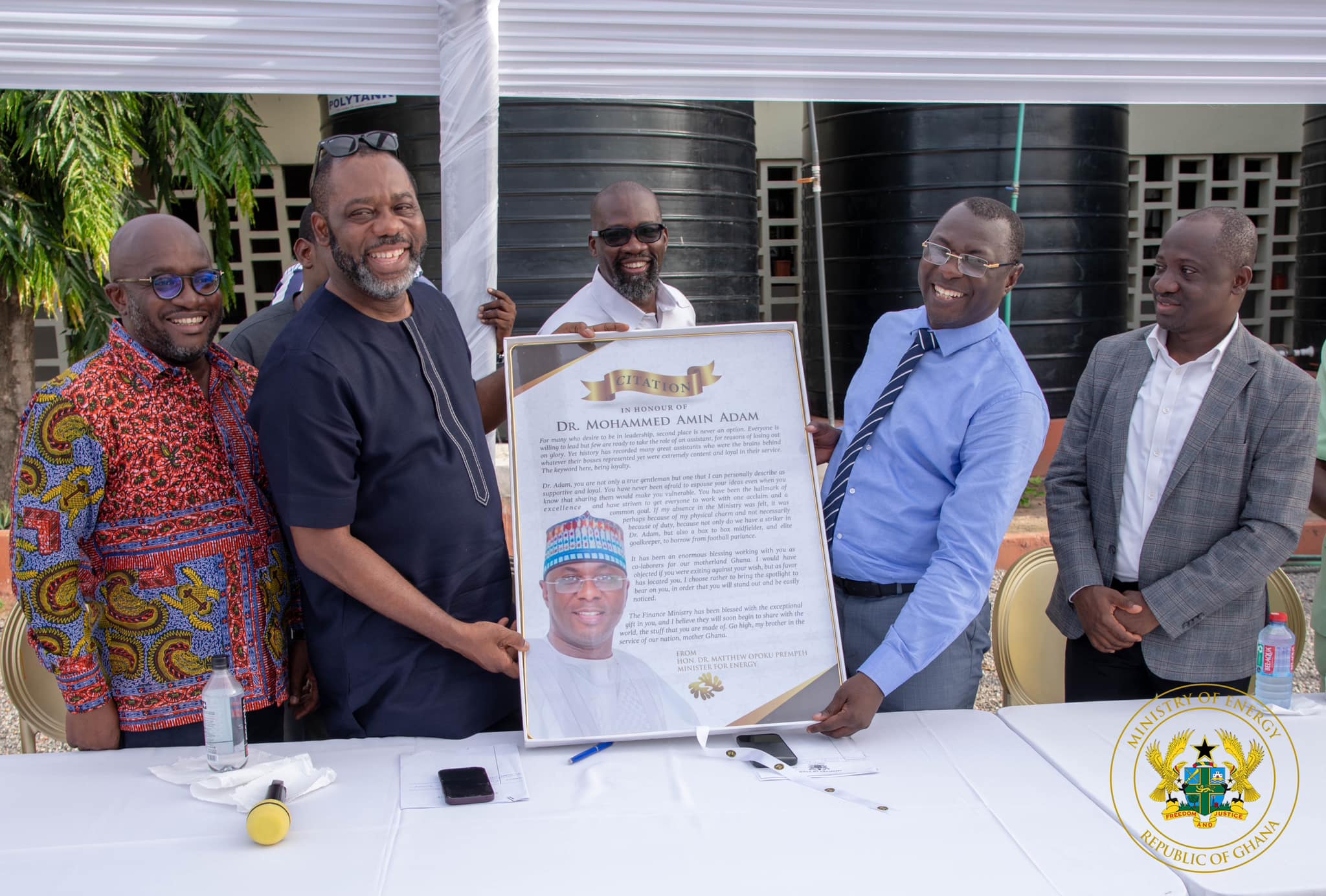 Two (2) citations of honour were presented to Dr. Amin Adam – one by Minister of Energy, Dr. Matthew Opoku Prempeh and the other from the staff of the Ministry.