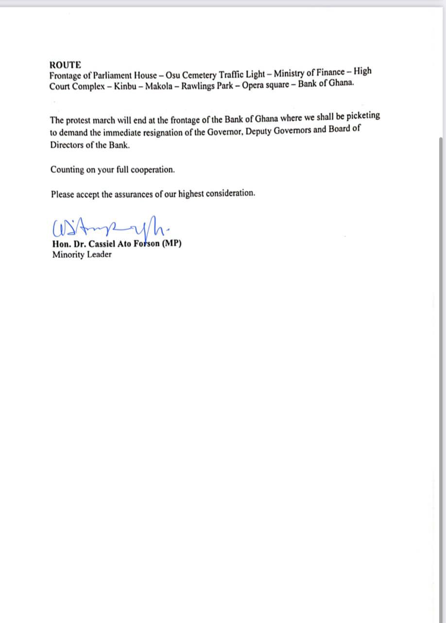 This was contained in a letter dated Monday, August 21, 2023, signed by the Minority Leader, Dr Cassiel Ato Forson to the Greater Accra Regional Police Command.