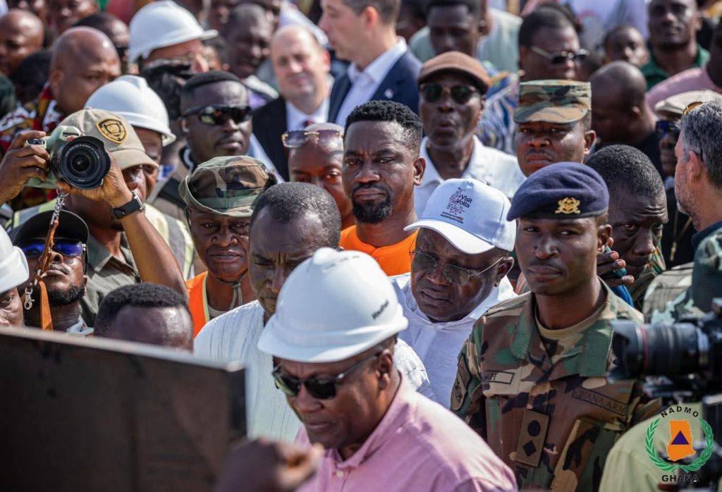 The Director General of the National Disaster Management Organisation (NADMO), Major (Rtd) Dr. Joseph Bikanyi Kuyon, together with the Deputy Director General of Operations, Hon. Teddy Safori Addi, joined the President of the Republic of Ghana H.E John Dramani Mahama at Agavedzi, a vibrant fishing community in the Ketu South District, for the official sod-cutting ceremony to commence Phase II of the Blekusu Sea Defence Project.