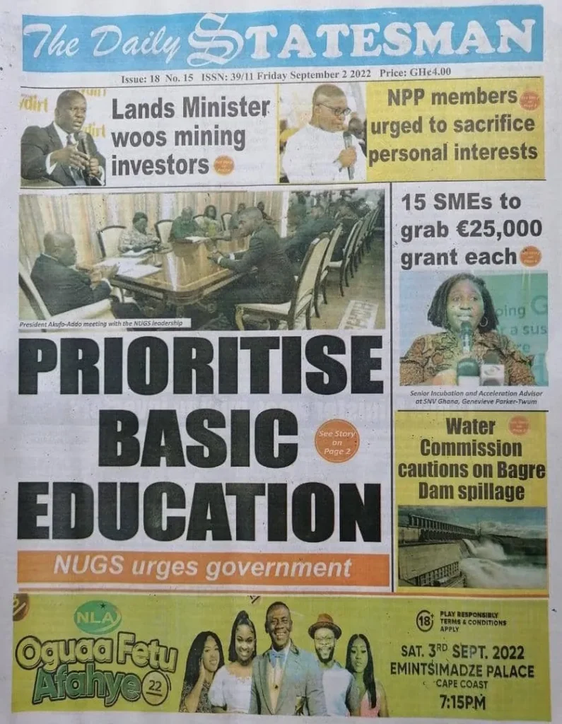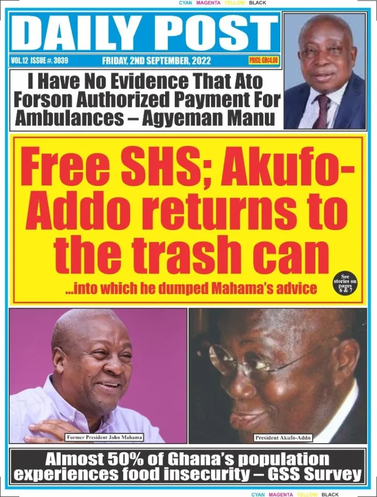 NEWSPAPER HEADLINES: Friday 2nd September, 2022