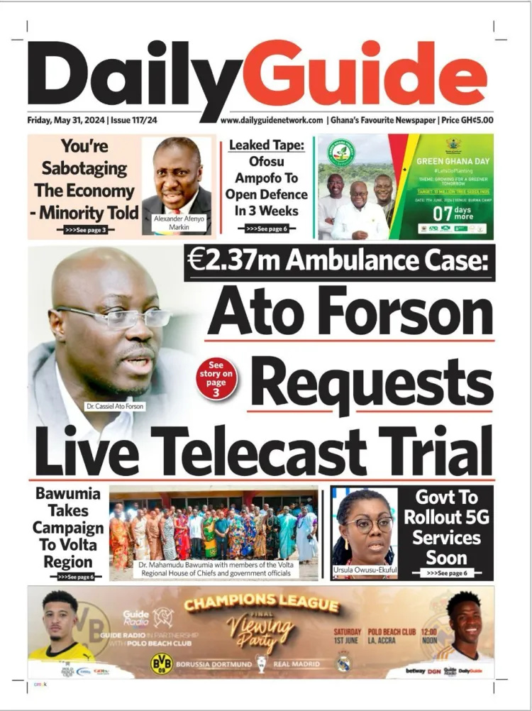 NEWSPAPER HEADLINES: Friday 31st May 2024