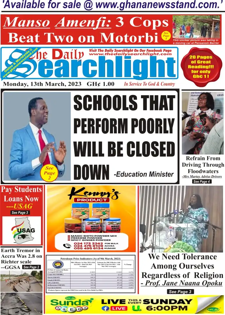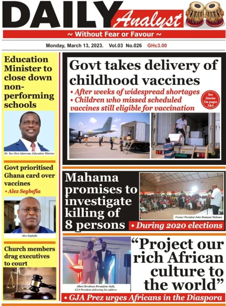 NEWSPAPER HEADLINES: Monday 13th March 2023