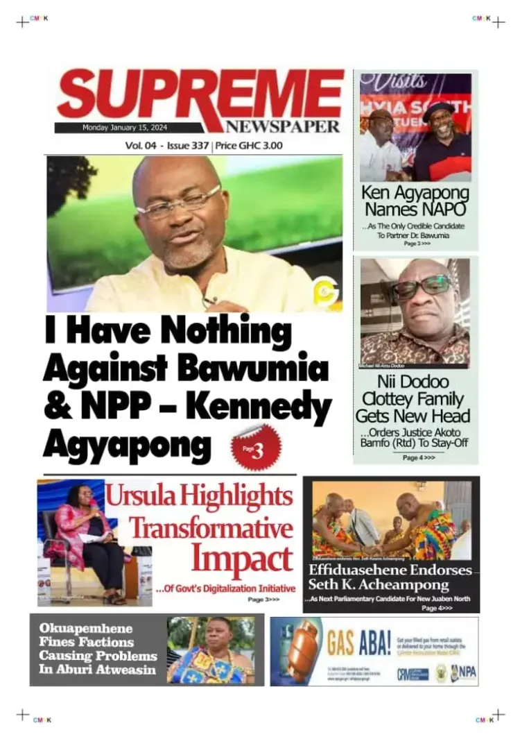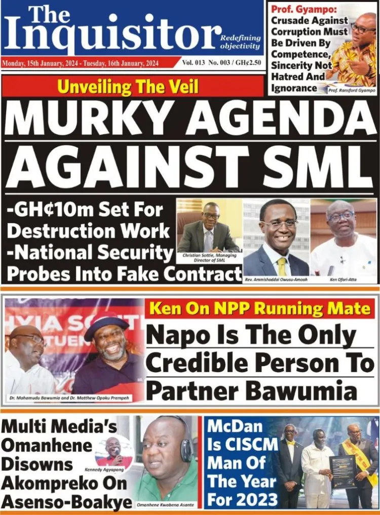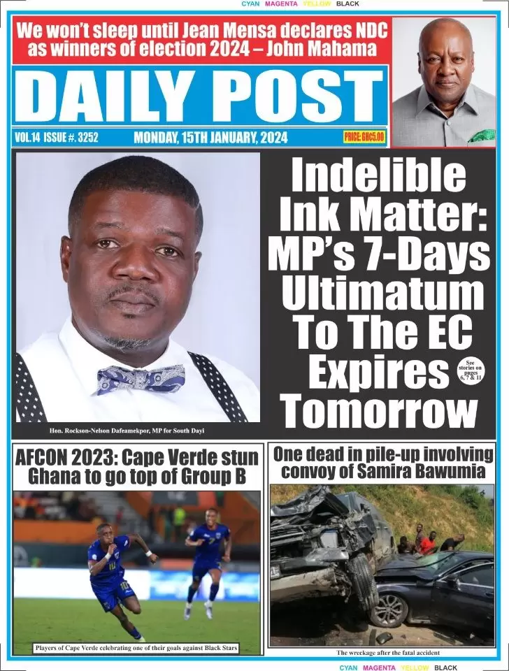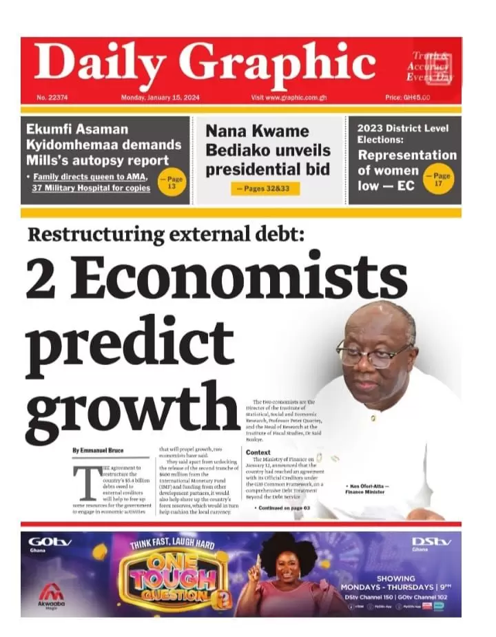 NEWSPAPER HEADLINES: Monday 15th January 2024