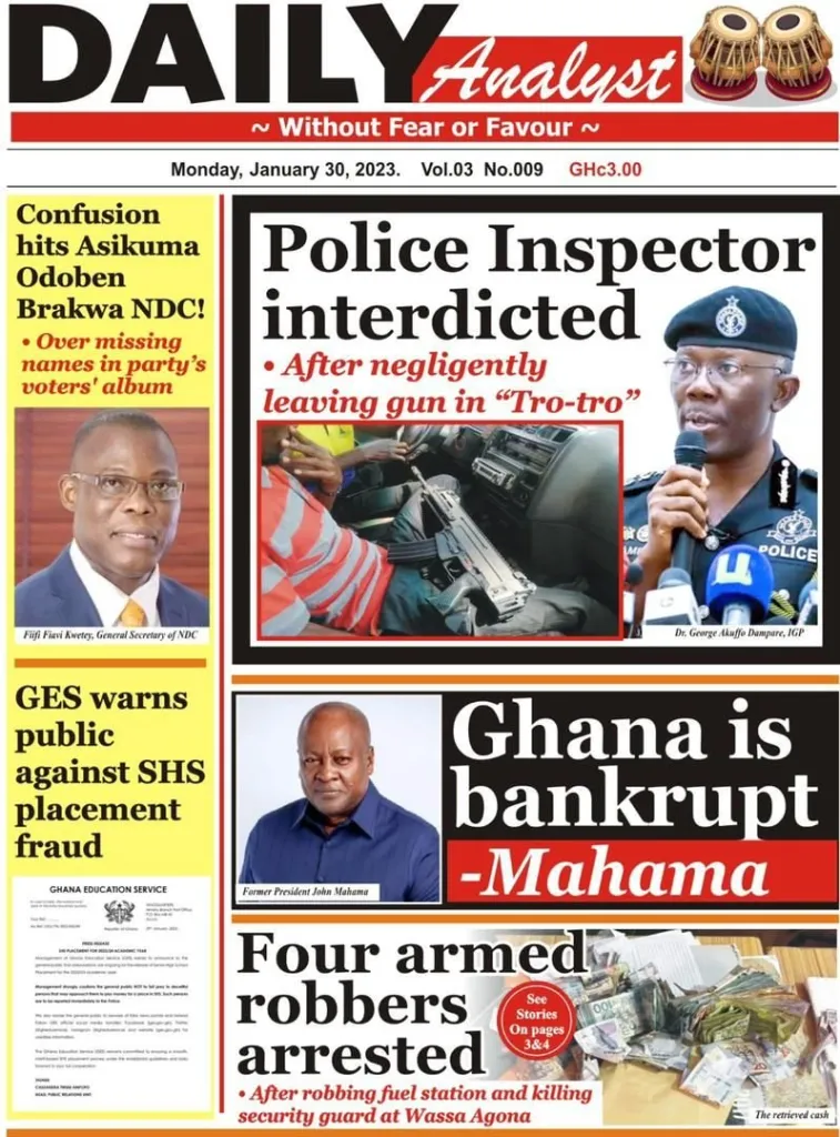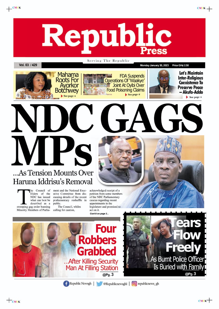 Headlines of major news items, as captured on the front pages of new newspapers. <img class="alignnone size-jnews750x375 wp-image-47385" src="https://myrepubliconline.com/wp-content/uploads/2023/01/WhatsApp-Image-2023-01-29-at-6.39.47-PM.jpeg" alt="" width="907" height="1280" /> <img class="alignnone size-jnews750x375 wp-image-47370" src="https://myrepubliconline.com/wp-content/uploads/2023/01/img-20230130-wa00145996847893279155158.webp" alt="" width="766" height="1024" /> <img class="alignnone size-jnews750x375 wp-image-47371" src="https://myrepubliconline.com/wp-content/uploads/2023/01/img-20230130-wa00028032043836113399130.webp" alt="" width="750" height="996" /> <img class="alignnone size-jnews750x375 wp-image-47372" src="https://myrepubliconline.com/wp-content/uploads/2023/01/img-20230130-wa00124386127041676528008.webp" alt="" width="689" height="1024" /> <img class="alignnone size-jnews750x375 wp-image-47373" src="https://myrepubliconline.com/wp-content/uploads/2023/01/img-20230130-wa00011432284832634122727.webp" alt="" width="723" height="1024" /> <img class="alignnone size-jnews750x375 wp-image-47374" src="https://myrepubliconline.com/wp-content/uploads/2023/01/img-20230130-wa00098674336920196246859.webp" alt="" width="757" height="1024" /> <img class="alignnone size-jnews750x375 wp-image-47375" src="https://myrepubliconline.com/wp-content/uploads/2023/01/img-20230130-wa0007808969050578537873.webp" alt="" width="751" height="1024" /> <img class="alignnone size-jnews750x375 wp-image-47376" src="https://myrepubliconline.com/wp-content/uploads/2023/01/img-20230130-wa0010534008954350975117.webp" alt="" width="802" height="1024" /> <img class="alignnone size-jnews750x375 wp-image-47377" src="https://myrepubliconline.com/wp-content/uploads/2023/01/img-20230130-wa00053209212970618071846.webp" alt="" width="808" height="1024" /> <img class="alignnone size-jnews750x375 wp-image-47378" src="https://myrepubliconline.com/wp-content/uploads/2023/01/img-20230130-wa00005340233323996426287.webp" alt="" width="766" height="1024" /> <img class="alignnone size-jnews750x375 wp-image-47379" src="https://myrepubliconline.com/wp-content/uploads/2023/01/img-20230130-wa00038848617412096036386.webp" alt="" width="854" height="1024" /> <img class="alignnone size-jnews750x375 wp-image-47380" src="https://myrepubliconline.com/wp-content/uploads/2023/01/img-20230130-wa00134124713472738271207.webp" alt="" width="749" height="1024" /> <img class="alignnone size-jnews750x375 wp-image-47381" src="https://myrepubliconline.com/wp-content/uploads/2023/01/img-20230130-wa00067299419186536161015.webp" alt="" width="823" height="1024" /> <img class="alignnone size-jnews750x375 wp-image-47382" src="https://myrepubliconline.com/wp-content/uploads/2023/01/img-20230130-wa00043967261012985190334.webp" alt="" width="825" height="1024" /> <img class="alignnone size-jnews750x375 wp-image-47383" src="https://myrepubliconline.com/wp-content/uploads/2023/01/img-20230130-wa0011490955580671230026.webp" alt="" width="783" height="1024" /> <img class="alignnone size-jnews750x375 wp-image-47384" src="https://myrepubliconline.com/wp-content/uploads/2023/01/img-20230130-wa00088301836516171066178.webp" alt="" width="800" height="1024" />
