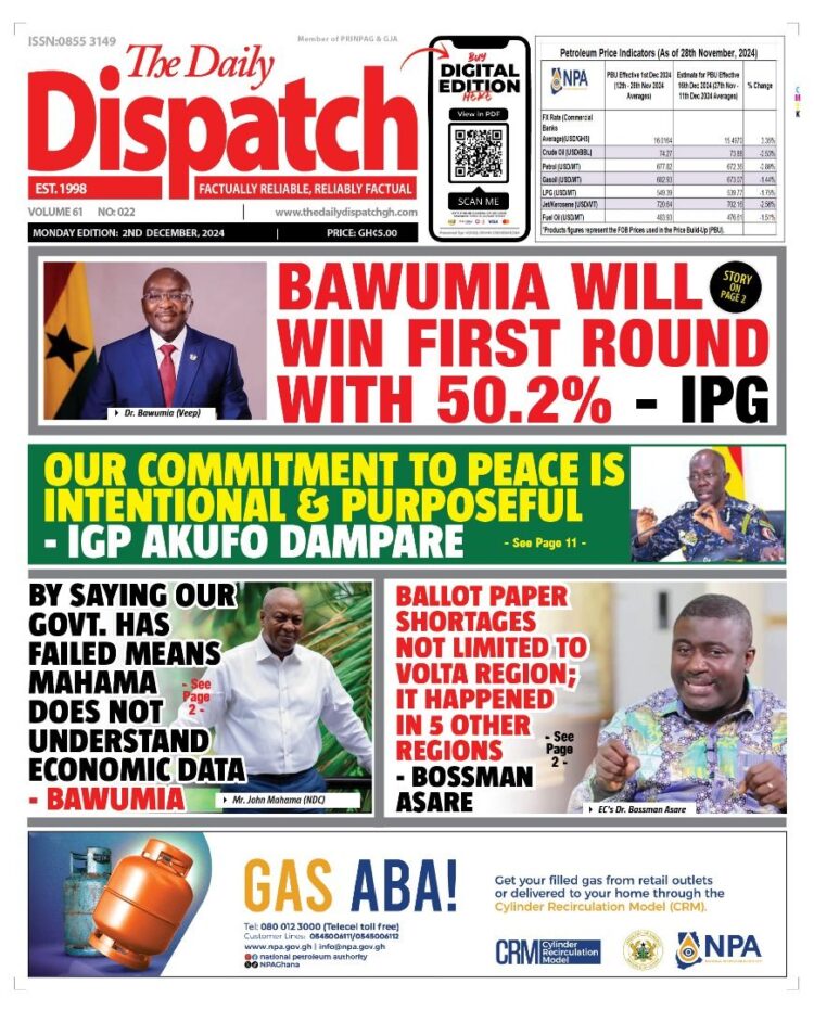 Headlines of major news items, as captured on the front pages of newspapers. <a href="https://myrepubliconline.com/newspaper-headlines-monday-december-02-2024/08aacbc2-db99-49b2-8d59-1cb64028ecb5/" rel="attachment wp-att-104121"><img class="alignnone size-full wp-image-104121" src="https://myrepubliconline.com/wp-content/uploads/2024/12/08aacbc2-db99-49b2-8d59-1cb64028ecb5.jpg" alt="" width="765" height="1080" /></a><a href="https://myrepubliconline.com/newspaper-headlines-monday-december-02-2024/graphic-35/" rel="attachment wp-att-104122"><img class="alignnone size-full wp-image-104122" src="https://myrepubliconline.com/wp-content/uploads/2024/12/Graphic.jpg" alt="" width="1000" height="1318" /></a><a href="https://myrepubliconline.com/newspaper-headlines-monday-december-02-2024/analyst-monday-5/" rel="attachment wp-att-104123"><img class="alignnone size-full wp-image-104123" src="https://myrepubliconline.com/wp-content/uploads/2024/12/Analyst-Monday.jpg" alt="" width="778" height="1056" /></a><a href="https://myrepubliconline.com/newspaper-headlines-monday-december-02-2024/img-20241201-wa0550/" rel="attachment wp-att-104124"><img class="alignnone size-full wp-image-104124" src="https://myrepubliconline.com/wp-content/uploads/2024/12/IMG-20241201-WA0550.jpg" alt="" width="1173" height="1600" /></a><a href="https://myrepubliconline.com/newspaper-headlines-monday-december-02-2024/img-20241201-wa0566/" rel="attachment wp-att-104125"><img class="alignnone size-full wp-image-104125" src="https://myrepubliconline.com/wp-content/uploads/2024/12/IMG-20241201-WA0566.jpg" alt="" width="1152" height="1600" /></a><a href="https://myrepubliconline.com/newspaper-headlines-monday-december-02-2024/img-20241201-wa0572/" rel="attachment wp-att-104126"><img class="alignnone size-full wp-image-104126" src="https://myrepubliconline.com/wp-content/uploads/2024/12/IMG-20241201-WA0572.jpg" alt="" width="822" height="1080" /></a><a href="https://myrepubliconline.com/newspaper-headlines-monday-december-02-2024/img-20241202-wa0008/" rel="attachment wp-att-104127"><img class="alignnone size-full wp-image-104127" src="https://myrepubliconline.com/wp-content/uploads/2024/12/IMG-20241202-WA0008.jpg" alt="" width="842" height="1080" /></a><a href="https://myrepubliconline.com/newspaper-headlines-monday-december-02-2024/img-20241202-wa0019/" rel="attachment wp-att-104128"><img class="alignnone size-full wp-image-104128" src="https://myrepubliconline.com/wp-content/uploads/2024/12/IMG-20241202-WA0019.jpg" alt="" width="759" height="1014" /></a><a href="https://myrepubliconline.com/newspaper-headlines-monday-december-02-2024/img-20241202-wa0022/" rel="attachment wp-att-104129"><img class="alignnone size-full wp-image-104129" src="https://myrepubliconline.com/wp-content/uploads/2024/12/IMG-20241202-WA0022.jpg" alt="" width="1177" height="1600" /></a><a href="https://myrepubliconline.com/newspaper-headlines-monday-december-02-2024/img-20241202-wa0023/" rel="attachment wp-att-104130"><img class="alignnone size-full wp-image-104130" src="https://myrepubliconline.com/wp-content/uploads/2024/12/IMG-20241202-WA0023.jpg" alt="" width="763" height="1080" /></a><a href="https://myrepubliconline.com/newspaper-headlines-monday-december-02-2024/img-20241202-wa0030/" rel="attachment wp-att-104131"><img class="alignnone size-full wp-image-104131" src="https://myrepubliconline.com/wp-content/uploads/2024/12/IMG-20241202-WA0030.jpg" alt="" width="763" height="1080" /></a><a href="https://myrepubliconline.com/newspaper-headlines-monday-december-02-2024/img-20241202-wa0056/" rel="attachment wp-att-104132"><img class="alignnone size-full wp-image-104132" src="https://myrepubliconline.com/wp-content/uploads/2024/12/IMG-20241202-WA0056.jpg" alt="" width="1136" height="1600" /></a><a href="https://myrepubliconline.com/newspaper-headlines-monday-december-02-2024/y6k78ffawgszvjtl3iq1xchayanqyuukry0oe1qo-thumbnail/" rel="attachment wp-att-104133"><img class="alignnone size-full wp-image-104133" src="https://myrepubliconline.com/wp-content/uploads/2024/12/Y6k78FfAWGSzVJTL3IQ1xChaYanqyUUkRY0oe1qO-thumbnail.jpg" alt="" width="1000" height="1361" /></a><a href="https://myrepubliconline.com/newspaper-headlines-monday-december-02-2024/the-custodian8714105824904039259-750x933/" rel="attachment wp-att-104139"><img class="alignnone size-full wp-image-104139" src="https://myrepubliconline.com/wp-content/uploads/2024/12/the-custodian8714105824904039259-750x933-1.jpg" alt="" width="750" height="933" /></a><a href="https://myrepubliconline.com/newspaper-headlines-monday-december-02-2024/daily-guide4772413461710416661-750x1001/" rel="attachment wp-att-104140"><img class="alignnone size-full wp-image-104140" src="https://myrepubliconline.com/wp-content/uploads/2024/12/daily-guide4772413461710416661-750x1001-1.jpg" alt="" width="750" height="1001" /></a><a href="https://myrepubliconline.com/newspaper-headlines-monday-december-02-2024/despatch8758435109229002625-750x931/" rel="attachment wp-att-104141"><img class="alignnone size-full wp-image-104141" src="https://myrepubliconline.com/wp-content/uploads/2024/12/despatch8758435109229002625-750x931-1.jpg" alt="" width="750" height="931" /></a><a href="https://myrepubliconline.com/newspaper-headlines-monday-december-02-2024/punch-africa5053766440133218167/" rel="attachment wp-att-104142"><img class="alignnone size-full wp-image-104142" src="https://myrepubliconline.com/wp-content/uploads/2024/12/punch-africa5053766440133218167.jpg" alt="" width="527" height="640" /></a><a href="https://myrepubliconline.com/newspaper-headlines-monday-december-02-2024/daily-democrat729879529681652397/" rel="attachment wp-att-104143"><img class="alignnone size-full wp-image-104143" src="https://myrepubliconline.com/wp-content/uploads/2024/12/daily-democrat729879529681652397.jpg" alt="" width="419" height="512" /></a><a href="https://myrepubliconline.com/newspaper-headlines-monday-december-02-2024/trust1897356807701380297/" rel="attachme