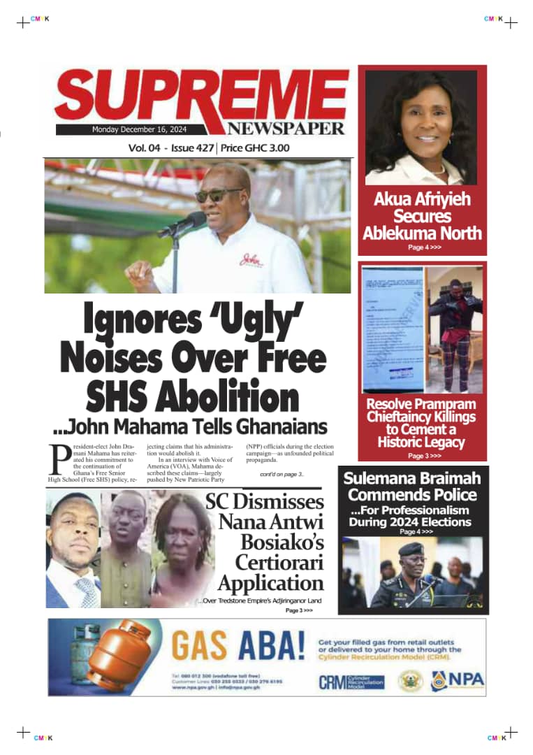 Headlines of major news items, as captured on the front pages of newspapers. <a href="https://myrepubliconline.com/newspaper-headlines-monday-december-16-2024/img-20241215-wa0048/" rel="attachment wp-att-105119"><img class="alignnone size-full wp-image-105119" src="https://myrepubliconline.com/wp-content/uploads/2024/12/IMG-20241215-WA0048.jpg" alt="" width="877" height="1237" /></a> <a href="https://myrepubliconline.com/newspaper-headlines-monday-december-16-2024/graphic-42/" rel="attachment wp-att-105108"><img class="alignnone size-full wp-image-105108" src="https://myrepubliconline.com/wp-content/uploads/2024/12/graphic-7.jpg" alt="" width="1000" height="1318" /></a><a href="https://myrepubliconline.com/newspaper-headlines-monday-december-16-2024/sports-2/" rel="attachment wp-att-105116"><img class="alignnone size-full wp-image-105116" src="https://myrepubliconline.com/wp-content/uploads/2024/12/sports.jpg" alt="" width="1000" height="1360" /></a><a href="https://myrepubliconline.com/newspaper-headlines-monday-december-16-2024/img-20241216-wa0011/" rel="attachment wp-att-105113"><img class="alignnone size-full wp-image-105113" src="https://myrepubliconline.com/wp-content/uploads/2024/12/IMG-20241216-WA0011.jpg" alt="" width="1177" height="1600" /></a><a href="https://myrepubliconline.com/newspaper-headlines-monday-december-16-2024/img-20241215-wa0046/" rel="attachment wp-att-105120"><img class="alignnone size-full wp-image-105120" src="https://myrepubliconline.com/wp-content/uploads/2024/12/IMG-20241215-WA0046.jpg" alt="" width="1311" height="1600" /></a><a href="https://myrepubliconline.com/newspaper-headlines-monday-december-16-2024/new-trust/" rel="attachment wp-att-105122"><img class="alignnone size-full wp-image-105122" src="https://myrepubliconline.com/wp-content/uploads/2024/12/new-trust.jpg" alt="" width="560" height="648" /></a><a href="https://myrepubliconline.com/newspaper-headlines-monday-december-16-2024/the-publisher1194758738779311009/" rel="attachment wp-att-105123"><img class="alignnone size-full wp-image-105123" src="https://myrepubliconline.com/wp-content/uploads/2024/12/the-publisher1194758738779311009.jpg" alt="" width="400" height="512" /></a><a href="https://myrepubliconline.com/newspaper-headlines-monday-december-16-2024/chronicle7805898386390071728/" rel="attachment wp-att-105124"><img class="alignnone size-full wp-image-105124" src="https://myrepubliconline.com/wp-content/uploads/2024/12/chronicle7805898386390071728.jpg" alt="" width="498" height="640" /></a><a href="https://myrepubliconline.com/newspaper-headlines-monday-december-16-2024/crusading-guide4093997968095587175/" rel="attachment wp-att-105125"><img class="alignnone size-full wp-image-105125" src="https://myrepubliconline.com/wp-content/uploads/2024/12/crusading-guide4093997968095587175.jpg" alt="" width="460" height="552" /></a><a href="https://myrepubliconline.com/newspaper-headlines-monday-december-16-2024/custodian5600586140777334218/" rel="attachment wp-att-105126"><img class="alignnone size-full wp-image-105126" src="https://myrepubliconline.com/wp-content/uploads/2024/12/custodian5600586140777334218.jpg" alt="" width="520" height="648" /></a><a href="https://myrepubliconline.com/newspaper-headlines-monday-december-16-2024/despatch3721393538572310275/" rel="attachment wp-att-105127"><img class="alignnone size-full wp-image-105127" src="https://myrepubliconline.com/wp-content/uploads/2024/12/despatch3721393538572310275.jpg" alt="" width="522" height="648" /></a><a href="https://myrepubliconline.com/newspaper-headlines-monday-december-16-2024/ghanaian-publisher1096339151653247697/" rel="attachment wp-att-105128"><img class="alignnone size-full wp-image-105128" src="https://myrepubliconline.com/wp-content/uploads/2024/12/ghanaian-publisher1096339151653247697.jpg" alt="" width="484" height="648" /></a><a href="https://myrepubliconline.com/newspaper-headlines-monday-december-16-2024/daily-guide5453046125484511746/" rel="attachment wp-att-105129"><img class="alignnone size-full wp-image-105129" src="https://myrepubliconline.com/wp-content/uploads/2024/12/daily-guide5453046125484511746.jpg" alt="" width="572" height="768" /></a><a href="https://myrepubliconline.com/newspaper-headlines-monday-december-16-2024/img-20241215-wa0199/" rel="attachment wp-att-105111"><img class="alignnone size-full wp-image-105111" src="https://myrepubliconline.com/wp-content/uploads/2024/12/IMG-20241215-WA0199.jpg" alt="" width="822" height="1080" /></a><a href="https://myrepubliconline.com/newspaper-headlines-monday-december-16-2024/img-20241216-wa0001/" rel="attachment wp-att-105112"><img class="alignnone size-full wp-image-105112" src="https://myrepubliconline.com/wp-content/uploads/2024/12/IMG-20241216-WA0001.jpg" alt="" width="763" height="1080" /></a><a href="https://myrepubliconline.com/newspaper-headlines-monday-december-16-2024/analyst-monday-1-3/" rel="attachment wp-att-105110"><img class="alignnone size-full wp-image-105110" src="https://myrepubliconline.com/wp-content/uploads/2024/12/Analyst-Monday-1.jpg" alt="" width="778" height="1056" /></a><a href="https://myrepubliconline.com/newspaper-headlines-monday-december-16-2024/img-20241216-wa0012/" rel="attachment wp-att-105114"><img class="alignnone size-full wp-image-105114" src="https://myrepubliconline.com/wp-content/uploads/2024/12/IMG-20241216-WA0012.jpg" alt="" width="763" height="1080" /></a><a href="https://myrepubliconline.com/newspaper-headlines-monday-december-16-2024/img-20241216-wa0017/" rel="attachment wp-att-105115"><img class="alignnone size-full wp-image-105115" src="https://myrepubliconline.com/wp-content/uploads/2024/12/IMG-20241216-WA0017.jpg" alt="" width="763" height="1080" /></a>