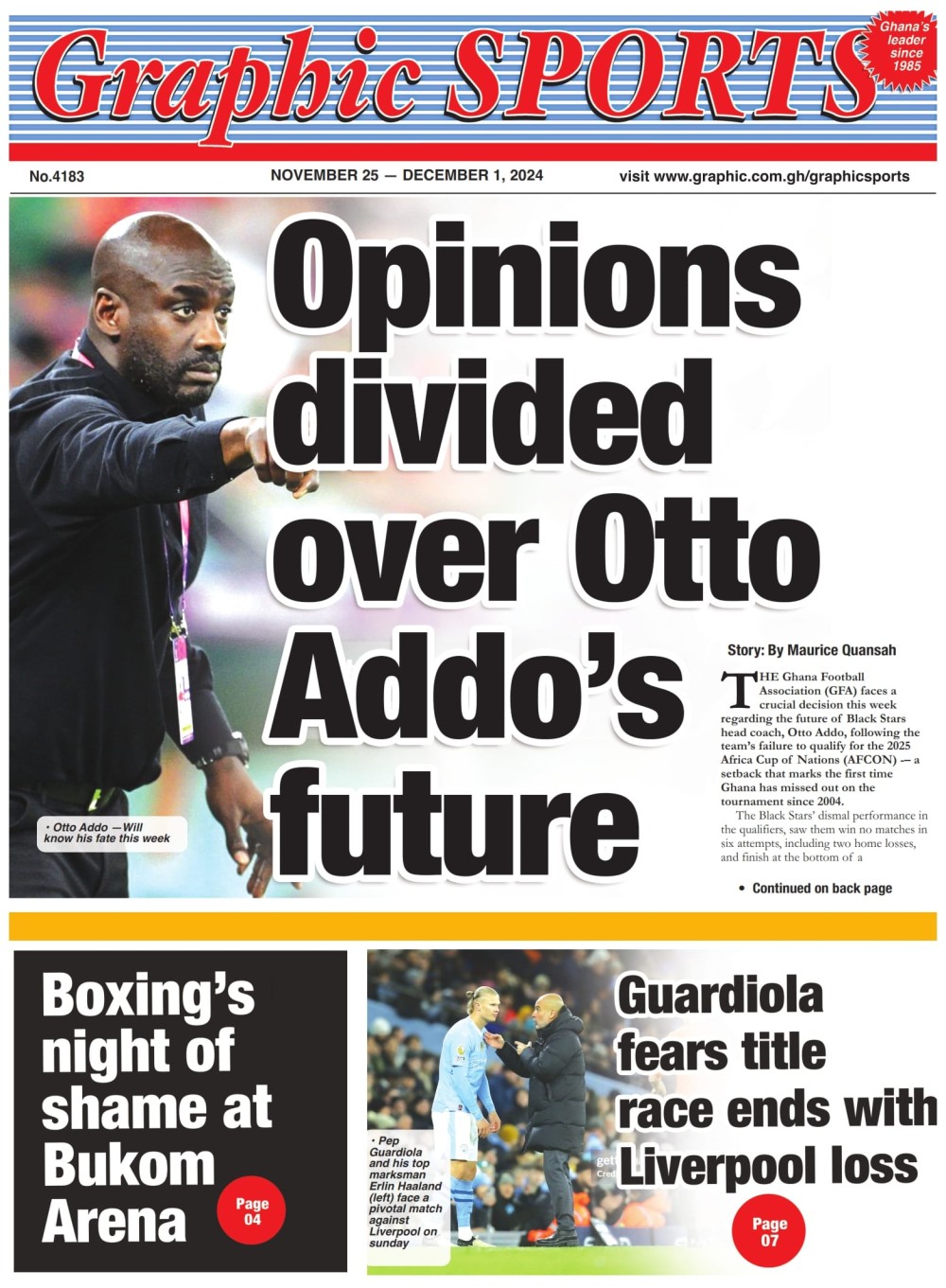 Headlines of major news items, as captured on the front pages of newspapers. <a href="https://myrepubliconline.com/ibrahim-mahama-donates-35-seater-bus-to-tamale-senior-high-school/e7cd2335-de32-4ba1-96bf-cf2ab661abbb/" rel="attachment wp-att-103626"><img class="alignnone size-full wp-image-103626" src="https://myrepubliconline.com/wp-content/uploads/2024/11/e7cd2335-de32-4ba1-96bf-cf2ab661abbb.jpeg" alt="" width="1134" height="1600" /></a><a href="https://myrepubliconline.com/newspaper-headlines-monday-november-25-2024/9gcg0yoxov3awwzebzj10hcmosld4oilmbyy8fsb-thumbnail/" rel="attachment wp-att-103630"><img class="alignnone size-full wp-image-103630" src="https://myrepubliconline.com/wp-content/uploads/2024/11/9GCg0YOXOV3AwwZebzJ10hcmosLD4oiLmbYY8fsb-thumbnail.jpg" alt="" width="1000" height="1361" /></a> <a href="https://myrepubliconline.com/newspaper-headlines-monday-november-25-2024/graphic-34/" rel="attachment wp-att-103631"><img class="alignnone size-full wp-image-103631" src="https://myrepubliconline.com/wp-content/uploads/2024/11/Graphic-2.jpg" alt="" width="1000" height="1318" /></a><a href="https://myrepubliconline.com/newspaper-headlines-monday-november-25-2024/analyst-monday-3-2/" rel="attachment wp-att-103632"><img class="alignnone size-full wp-image-103632" src="https://myrepubliconline.com/wp-content/uploads/2024/11/Analyst-Monday-3.jpg" alt="" width="778" height="1056" /></a> <a href="https://myrepubliconline.com/newspaper-headlines-monday-november-25-2024/img-20241124-wa0438/" rel="attachment wp-att-103633"><img class="alignnone size-full wp-image-103633" src="https://myrepubliconline.com/wp-content/uploads/2024/11/IMG-20241124-WA0438.jpg" alt="" width="822" height="1080" /></a> <a href="https://myrepubliconline.com/newspaper-headlines-monday-november-25-2024/img-20241124-wa0444/" rel="attachment wp-att-103634"><img class="alignnone size-full wp-image-103634" src="https://myrepubliconline.com/wp-content/uploads/2024/11/IMG-20241124-WA0444.jpg" alt="" width="1152" height="1600" /></a> <a href="https://myrepubliconline.com/newspaper-headlines-monday-november-25-2024/img-20241124-wa0495/" rel="attachment wp-att-103635"><img class="alignnone size-full wp-image-103635" src="https://myrepubliconline.com/wp-content/uploads/2024/11/IMG-20241124-WA0495.jpg" alt="" width="905" height="1280" /></a> <a href="https://myrepubliconline.com/newspaper-headlines-monday-november-25-2024/img-20241125-wa0009/" rel="attachment wp-att-103636"><img class="alignnone size-full wp-image-103636" src="https://myrepubliconline.com/wp-content/uploads/2024/11/IMG-20241125-WA0009.jpg" alt="" width="763" height="1080" /></a> <a href="https://myrepubliconline.com/newspaper-headlines-monday-november-25-2024/img-20241125-wa0027/" rel="attachment wp-att-103637"><img class="alignnone size-full wp-image-103637" src="https://myrepubliconline.com/wp-content/uploads/2024/11/IMG-20241125-WA0027.jpg" alt="" width="1177" height="1600" /></a> <a href="https://myrepubliconline.com/newspaper-headlines-monday-november-25-2024/img-20241125-wa0034/" rel="attachment wp-att-103638"><img class="alignnone size-full wp-image-103638" src="https://myrepubliconline.com/wp-content/uploads/2024/11/IMG-20241125-WA0034.jpg" alt="" width="763" height="1080" /></a><a href="https://myrepubliconline.com/newspaper-headlines-monday-november-25-2024/inquisitor-2-2/" rel="attachment wp-att-103642"><img class="alignnone size-full wp-image-103642" src="https://myrepubliconline.com/wp-content/uploads/2024/11/inquisitor-2.jpg" alt="" width="473" height="640" /></a><a href="https://myrepubliconline.com/newspaper-headlines-monday-november-25-2024/herald7313135150389775287/" rel="attachment wp-att-103643"><img class="alignnone size-full wp-image-103643" src="https://myrepubliconline.com/wp-content/uploads/2024/11/herald7313135150389775287.jpg" alt="" width="450" height="607" /></a><a href="https://myrepubliconline.com/newspaper-headlines-monday-november-25-2024/informer7178816230242117456/" rel="attachment wp-att-103644"><img class="alignnone size-full wp-image-103644" src="https://myrepubliconline.com/wp-content/uploads/2024/11/informer7178816230242117456.jpg" alt="" width="484" height="648" /></a><a href="https://myrepubliconline.com/newspaper-headlines-monday-november-25-2024/times2803904611410140864/" rel="attachment wp-att-103645"><img class="alignnone size-full wp-image-103645" src="https://myrepubliconline.com/wp-content/uploads/2024/11/times2803904611410140864.jpg" alt="" width="524" height="648" /></a><a href="https://myrepubliconline.com/newspaper-headlines-monday-november-25-2024/statesman8951148827762270503/" rel="attachment wp-att-103646"><img class="alignnone size-full wp-image-103646" src="https://myrepubliconline.com/wp-content/uploads/2024/11/statesman8951148827762270503.jpg" alt="" width="464" height="607" /></a><a href="https://myrepubliconline.com/newspaper-headlines-monday-november-25-2024/metro-lens79090890226802695/" rel="attachment wp-att-103647"><img class="alignnone size-full wp-image-103647" src="https://myrepubliconline.com/wp-content/uploads/2024/11/metro-lens79090890226802695.jpg" alt="" width="454" height="648" /></a><a href="https://myrepubliconline.com/newspaper-headlines-monday-november-25-2024/finder4935334108869949752/" rel="attachment wp-att-103648"><img class="alignnone size-full wp-image-103648" src="https://myrepubliconline.com/wp-content/uploads/2024/11/finder4935334108869949752.jpg" alt="" width="486" height="640" /></a><a href="https://myrepubliconline.com/newspaper-headlines-monday-november-25-2024/news-centa3971696494890145570/" rel="attachment wp-att-103649"><img class="alignnone size-full wp-image-103649" src="https://myrepubliconline.com/wp-content/uploads/2024/11/news-centa3971696494890145570.jpg" alt="" width="484" height="648" /></a><a href="https://myrepubliconline.com/newspaper-headlines-monday-november-25-2024/supreme4596888206624855789/" rel="attachment wp-att-103650"><img class="alignnone size-