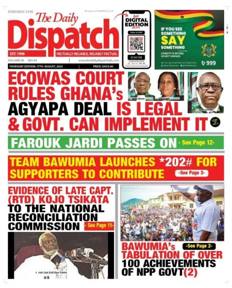Headlines of major news items, as captured on the front pages of newspapers.<img class="alignnone size-full wp-image-67532" src="https://myrepubliconline.com/wp-content/uploads/2023/08/A5E5ED03-8E3B-42F1-B81F-880CB82CAAFC.jpeg" alt="" width="1200" height="1600" /><img class="alignnone size-jnews750x375 wp-image-67520" src="https://myrepubliconline.com/wp-content/uploads/2023/08/3B9C3ACA-3319-4195-B4FF-20CBF8399C78.webp" alt="" width="578" height="720" /> <img class="alignnone size-jnews750x375 wp-image-67521" src="https://myrepubliconline.com/wp-content/uploads/2023/08/7109B6EA-AF6C-4C65-A0E4-0BFB98930535.webp" alt="" width="750" height="962" /> <img class="alignnone size-jnews750x375 wp-image-67522" src="https://myrepubliconline.com/wp-content/uploads/2023/08/158D0688-5201-4015-A64F-3DDD4432E598.webp" alt="" width="750" height="930" /> <img class="alignnone size-jnews750x375 wp-image-67523" src="https://myrepubliconline.com/wp-content/uploads/2023/08/8CB38EAD-3E7D-495D-8C4C-6F808CA76BF7.jpeg" alt="" width="1274" height="1600" /> <img class="alignnone size-jnews750x375 wp-image-67524" src="https://myrepubliconline.com/wp-content/uploads/2023/08/958E5688-EE1D-4429-A441-AE2D1CFC6B90.webp" alt="" width="750" height="1009" /> <img class="alignnone size-jnews750x375 wp-image-67525" src="https://myrepubliconline.com/wp-content/uploads/2023/08/C5372969-FD34-49DE-BB77-E4C8E54B7132.webp" alt="" width="750" height="996" /> <img class="alignnone size-jnews750x375 wp-image-67526" src="https://myrepubliconline.com/wp-content/uploads/2023/08/A4948730-4F30-4FDD-9510-58C7FE75DCCF.webp" alt="" width="750" height="1061" /> <img class="alignnone size-jnews750x375 wp-image-67527" src="https://myrepubliconline.com/wp-content/uploads/2023/08/CB12B6D6-02AC-4C4F-A7DA-AE1E52090C92.webp" alt="" width="750" height="1039" /> <img class="alignnone size-jnews750x375 wp-image-67528" src="https://myrepubliconline.com/wp-content/uploads/2023/08/CC8885E1-6F81-4AEE-94FB-5FCC4B279A7B.webp" alt="" width="750" height="1027" /> <img class="alignnone size-jnews750x375 wp-image-67529" src="https://myrepubliconline.com/wp-content/uploads/2023/08/8AD81088-4450-4AAB-A87B-54371847C369.webp" alt="" width="750" height="1063" /> <img class="alignnone size-jnews750x375 wp-image-67530" src="https://myrepubliconline.com/wp-content/uploads/2023/08/DD7EB4A1-DE69-44FA-A975-44080C135E58.webp" alt="" width="750" height="986" />
