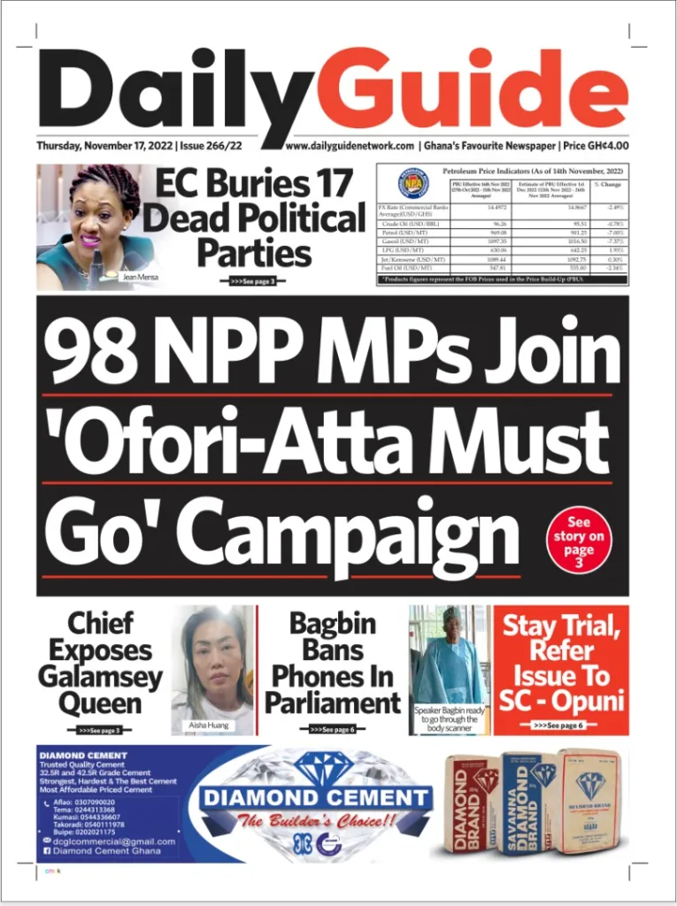 Tags: ChronicleCrusading GuideDaily DispatchDaily GraphicDaily GuideGhanaian TimesRepublic Pressspectator