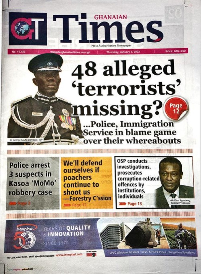 Headlines of major news items, as captured on the front pages of new newspapers. <img class="alignnone size-full wp-image-45125" src="https://myrepubliconline.com/wp-content/uploads/2023/01/img-20230105-wa00027839660401698120108.webp" alt="" width="720" height="939" /> <img class="alignnone size-jnews750x375 wp-image-45126" src="https://myrepubliconline.com/wp-content/uploads/2023/01/img-20230105-wa00001365691536488029333.webp" alt="" width="825" height="1024" /> <img class="alignnone size-jnews750x375 wp-image-45127" src="https://myrepubliconline.com/wp-content/uploads/2023/01/img-20230105-wa00017276158402681376151.webp" alt="" width="767" height="1024" /><img class=" wp-image-45131 alignright" src="https://myrepubliconline.com/wp-content/uploads/2023/01/GT-1.jpg" alt="" width="757" height="978" />