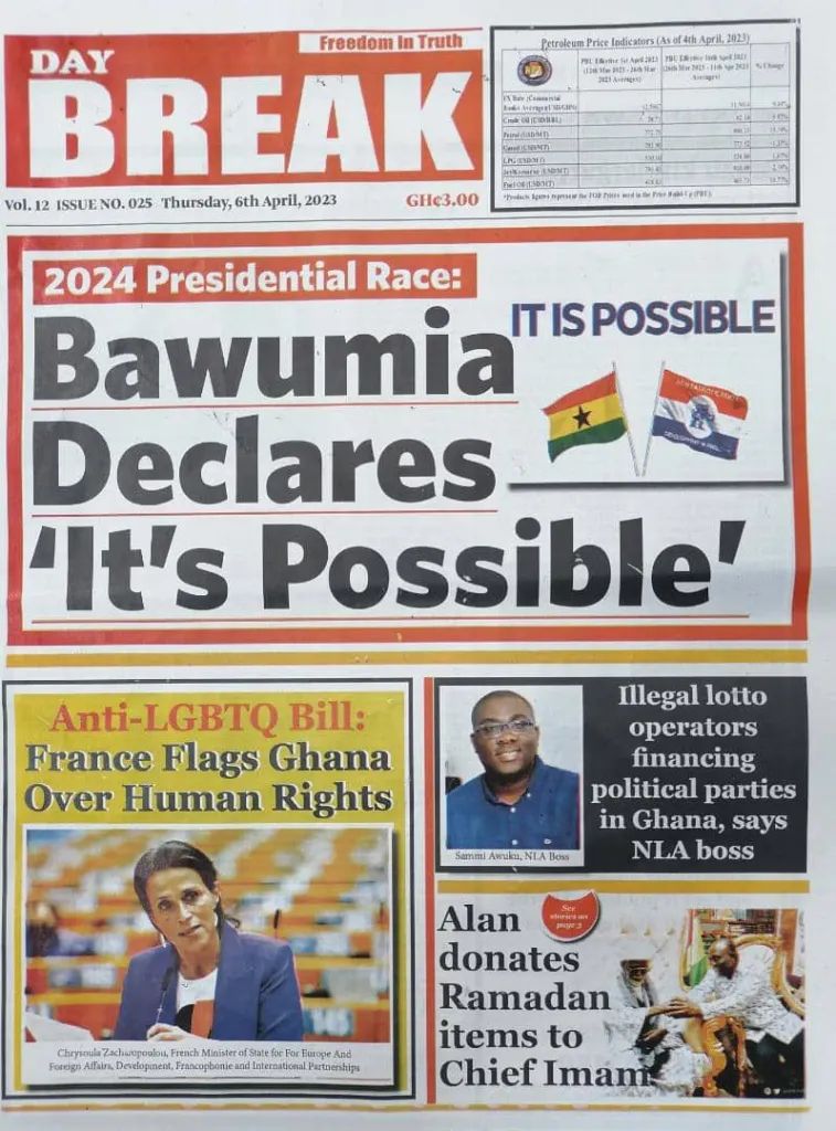 NEWSPAPER HEADLINES: Thursday 6th April 2023