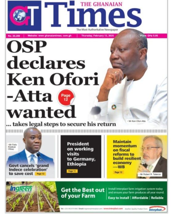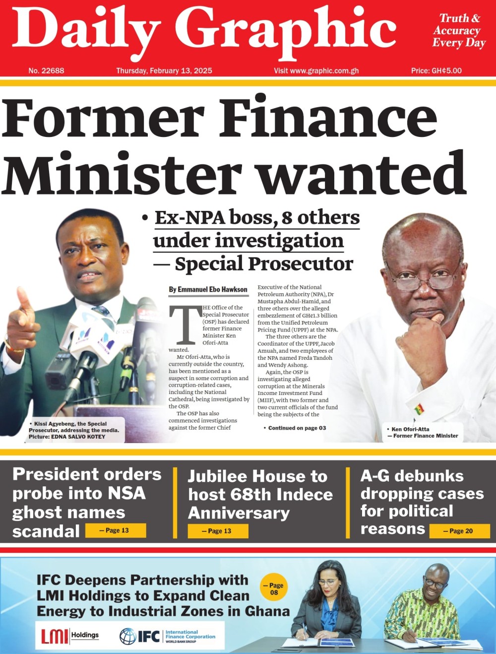Headlines of major news items, as captured on the front pages of newspapers. <a href="https://myrepubliconline.com/newspaper-headlines-thursday-february-13-2025/k8x3mjm4aw0hovegeaecfvm5uvffb3bkfaq3zukm-thumbnail/" rel="attachment wp-att-108566"><img class="alignnone size-full wp-image-108566" src="https://myrepubliconline.com/wp-content/uploads/2025/02/k8X3MjM4AW0hOvEGEAECFVM5UvfFB3bkfaQ3Zukm-thumbnail.jpg" alt="" width="1000" height="1318" /></a><a href="https://myrepubliconline.com/newspaper-headlines-thursday-february-13-2025/chronicle2877428516405045799/" rel="attachment wp-att-108582"><img class="alignnone size-full wp-image-108582" src="https://myrepubliconline.com/wp-content/uploads/2025/02/chronicle2877428516405045799.jpg" alt="" width="498" height="640" /></a><a href="https://myrepubliconline.com/newspaper-headlines-thursday-february-13-2025/gh-times8011533126693431861/" rel="attachment wp-att-108583"><img class="alignnone size-full wp-image-108583" src="https://myrepubliconline.com/wp-content/uploads/2025/02/gh-times8011533126693431861.jpg" alt="" width="556" height="696" /></a><a href="https://myrepubliconline.com/newspaper-headlines-thursday-february-13-2025/crusading-guide7802739357929737017/" rel="attachment wp-att-108584"><img class="alignnone size-full wp-image-108584" src="https://myrepubliconline.com/wp-content/uploads/2025/02/crusading-guide7802739357929737017.jpg" alt="" width="538" height="648" /></a><a href="https://myrepubliconline.com/newspaper-headlines-thursday-february-13-2025/despatch3361882640119332923/" rel="attachment wp-att-108585"><img class="alignnone size-full wp-image-108585" src="https://myrepubliconline.com/wp-content/uploads/2025/02/despatch3361882640119332923.jpg" alt="" width="522" height="648" /></a><a href="https://myrepubliconline.com/newspaper-headlines-thursday-february-13-2025/daily-guide383106605893854124/" rel="attachment wp-att-108586"><img class="alignnone size-full wp-image-108586" src="https://myrepubliconline.com/wp-content/uploads/2025/02/daily-guide383106605893854124.jpg" alt="" width="479" height="640" /></a><a href="https://myrepubliconline.com/newspaper-headlines-thursday-february-13-2025/banner-3/" rel="attachment wp-att-108574"><img class="alignnone size-full wp-image-108574" src="https://myrepubliconline.com/wp-content/uploads/2025/02/banner-2.jpg" alt="" width="1132" height="1600" /></a><a href="https://myrepubliconline.com/newspaper-headlines-thursday-february-13-2025/business-analyst-thursday-1-5/" rel="attachment wp-att-108575"><img class="alignnone size-full wp-image-108575" src="https://myrepubliconline.com/wp-content/uploads/2025/02/business-analyst-Thursday-1.jpg" alt="" width="772" height="1069" /></a><a href="https://myrepubliconline.com/newspaper-headlines-thursday-february-13-2025/img-20250213-wa0005/" rel="attachment wp-att-108588"><img class="alignnone size-full wp-image-108588" src="https://myrepubliconline.com/wp-content/uploads/2025/02/IMG-20250213-WA0005.jpg" alt="" width="1150" height="1600" /></a><a href="https://myrepubliconline.com/newspaper-headlines-thursday-february-13-2025/enqu/" rel="attachment wp-att-108576"><img class="alignnone size-full wp-image-108576" src="https://myrepubliconline.com/wp-content/uploads/2025/02/enqu.jpg" alt="" width="1229" height="1600" /></a><a href="https://myrepubliconline.com/newspaper-headlines-thursday-february-13-2025/press-2/" rel="attachment wp-att-108577"><img class="alignnone size-full wp-image-108577" src="https://myrepubliconline.com/wp-content/uploads/2025/02/press.jpg" alt="" width="763" height="1080" /></a><a href="https://myrepubliconline.com/newspaper-headlines-thursday-february-13-2025/search-7/" rel="attachment wp-att-108578"><img class="alignnone size-full wp-image-108578" src="https://myrepubliconline.com/wp-content/uploads/2025/02/search-2.jpg" alt="" width="763" height="1080" /></a><a href="https://myrepubliconline.com/newspaper-headlines-thursday-february-13-2025/supreme-20/" rel="attachment wp-att-108579"><img class="alignnone size-full wp-image-108579" src="https://myrepubliconline.com/wp-content/uploads/2025/02/supreme-1.jpg" alt="" width="763" height="1080" /></a><a href="https://myrepubliconline.com/newspaper-headlines-thursday-february-13-2025/voice-5/" rel="attachment wp-att-108580"><img class="alignnone size-full wp-image-108580" src="https://myrepubliconline.com/wp-content/uploads/2025/02/voice-2.jpg" alt="" width="1134" height="1600" /></a> <a href="https://myrepubliconline.com/newspaper-headlines-thursday-february-13-2025/bft-13/" rel="attachment wp-att-108564"><img class="alignnone size-full wp-image-108564" src="https://myrepubliconline.com/wp-content/uploads/2025/02/BFT-4.jpg" alt="" width="763" height="1080" /></a> <a href="https://myrepubliconline.com/newspaper-headlines-thursday-february-13-2025/blwfa583fydjlpduhmkibphkkg4d3f5ryyxsf01o-thumbnail/" rel="attachment wp-att-108565"><img class="alignnone size-full wp-image-108565" src="https://myrepubliconline.com/wp-content/uploads/2025/02/BLwFA583fyDJlpDUHmKiBphKkg4D3F5RyyXSF01o-thumbnail.jpg" alt="" width="1000" height="1361" /></a>