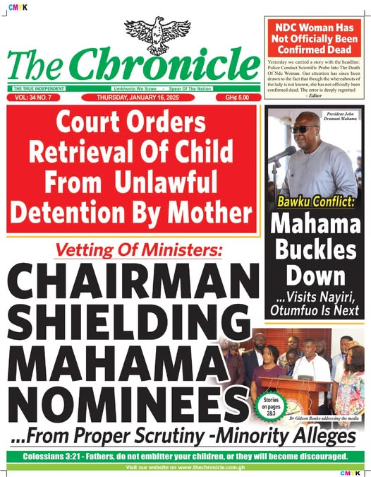 Headlines of major news items, as captured on the front pages of newspapers. <a href="https://myrepubliconline.com/newspaper-headlines-thursday-january-16-2025/graphic-49/" rel="attachment wp-att-106797"><img class="alignnone size-full wp-image-106797" src="https://myrepubliconline.com/wp-content/uploads/2025/01/Graphic-3.jpg" alt="" width="1000" height="1318" /></a><a href="https://myrepubliconline.com/newspaper-headlines-thursday-january-16-2025/business-analyst-thursday-22/" rel="attachment wp-att-106799"><img class="alignnone size-full wp-image-106799" src="https://myrepubliconline.com/wp-content/uploads/2025/01/business-analyst-Thursday-22.jpg" alt="" width="742" height="1026" /></a> <a href="https://myrepubliconline.com/newspaper-headlines-thursday-january-16-2025/img-20250115-wa0597/" rel="attachment wp-att-106800"><img class="alignnone size-full wp-image-106800" src="https://myrepubliconline.com/wp-content/uploads/2025/01/IMG-20250115-WA0597.jpg" alt="" width="763" height="1080" /></a> <a href="https://myrepubliconline.com/newspaper-headlines-thursday-january-16-2025/img-20250116-wa0019/" rel="attachment wp-att-106801"><img class="alignnone size-full wp-image-106801" src="https://myrepubliconline.com/wp-content/uploads/2025/01/IMG-20250116-WA0019.jpg" alt="" width="1229" height="1600" /></a> <a href="https://myrepubliconline.com/newspaper-headlines-thursday-january-16-2025/img-20250116-wa0024/" rel="attachment wp-att-106802"><img class="alignnone size-full wp-image-106802" src="https://myrepubliconline.com/wp-content/uploads/2025/01/IMG-20250116-WA0024.jpg" alt="" width="763" height="1080" /></a> <a href="https://myrepubliconline.com/newspaper-headlines-thursday-january-16-2025/img-20250116-wa0029/" rel="attachment wp-att-106803"><img class="alignnone size-full wp-image-106803" src="https://myrepubliconline.com/wp-content/uploads/2025/01/IMG-20250116-WA0029.jpg" alt="" width="763" height="1080" /></a> <a href="https://myrepubliconline.com/newspaper-headlines-thursday-january-16-2025/showbix-2/" rel="attachment wp-att-106804"><img class="alignnone size-full wp-image-106804" src="https://myrepubliconline.com/wp-content/uploads/2025/01/Showbix.jpg" alt="" width="1000" height="1361" /></a><a href="https://myrepubliconline.com/newspaper-headlines-thursday-january-16-2025/punch-africa5733991147905327901/" rel="attachment wp-att-106808"><img class="alignnone size-full wp-image-106808" src="https://myrepubliconline.com/wp-content/uploads/2025/01/punch-africa5733991147905327901.jpg" alt="" width="504" height="640" /></a><a href="https://myrepubliconline.com/newspaper-headlines-thursday-january-16-2025/supreme1460423114237997726/" rel="attachment wp-att-106809"><img class="alignnone size-full wp-image-106809" src="https://myrepubliconline.com/wp-content/uploads/2025/01/supreme1460423114237997726.jpg" alt="" width="457" height="648" /></a><a href="https://myrepubliconline.com/newspaper-headlines-thursday-january-16-2025/despatch16716878351829258648/" rel="attachment wp-att-106810"><img class="alignnone size-full wp-image-106810" src="https://myrepubliconline.com/wp-content/uploads/2025/01/despatch16716878351829258648.jpg" alt="" width="522" height="648" /></a><a href="https://myrepubliconline.com/newspaper-headlines-thursday-january-16-2025/crusading-guide15771465924659790427/" rel="attachment wp-att-106811"><img class="alignnone size-full wp-image-106811" src="https://myrepubliconline.com/wp-content/uploads/2025/01/crusading-guide15771465924659790427.jpg" alt="" width="538" height="648" /></a><a href="https://myrepubliconline.com/newspaper-headlines-thursday-january-16-2025/img-20250116-wa0021/" rel="attachment wp-att-106812"><img class="alignnone size-full wp-image-106812" src="https://myrepubliconline.com/wp-content/uploads/2025/01/IMG-20250116-WA0021.jpg" alt="" width="758" height="1080" /></a><a href="https://myrepubliconline.com/newspaper-headlines-thursday-january-16-2025/chronicle-32/" rel="attachment wp-att-106818"><img class="alignnone size-full wp-image-106818" src="https://myrepubliconline.com/wp-content/uploads/2025/01/chronicle.jpg" alt="" width="526" height="675" /></a>