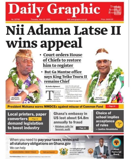 A glance at the front pages of the major Newspapers. Log on to myrepubliconline.com for more updates.