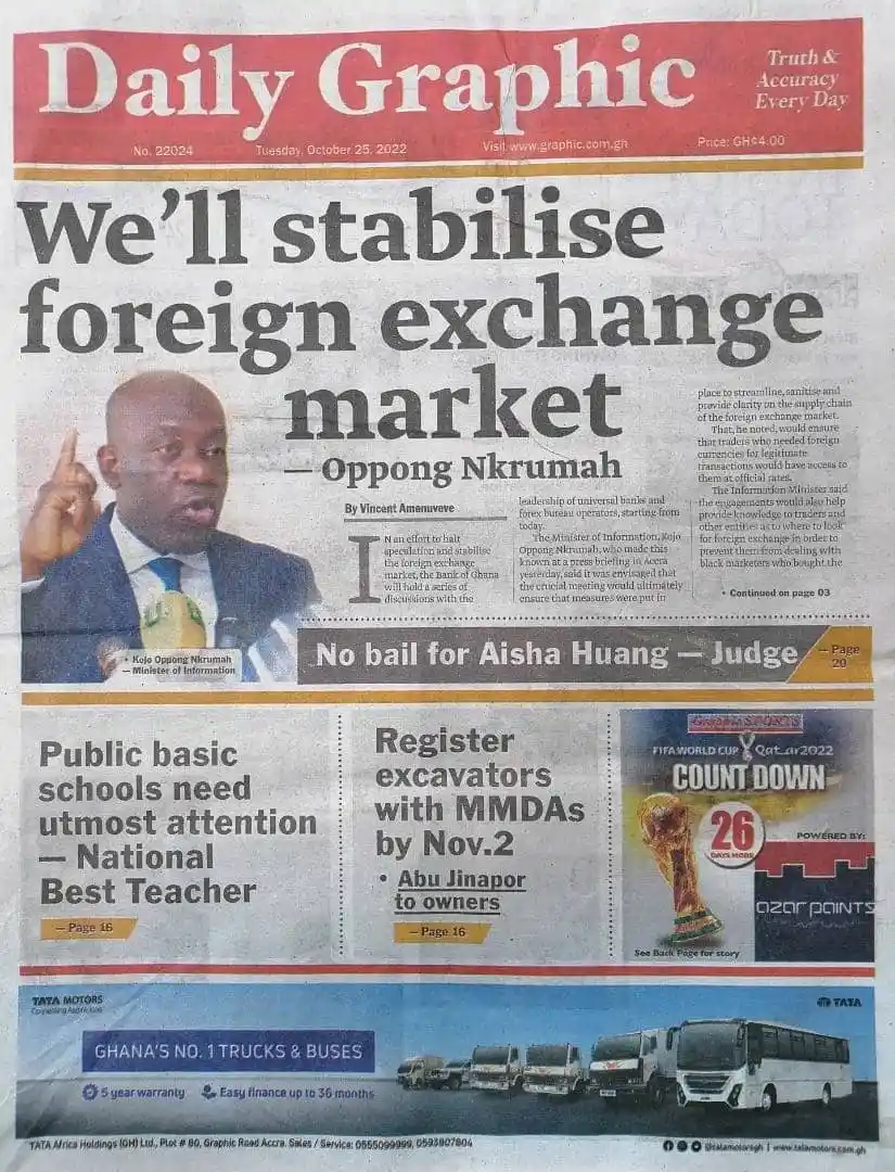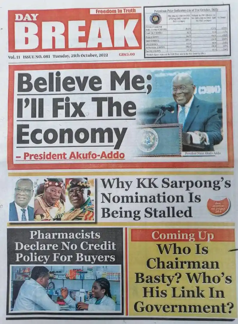NEWSPAPER HEADLINES: Tuesday 25th October, 2022