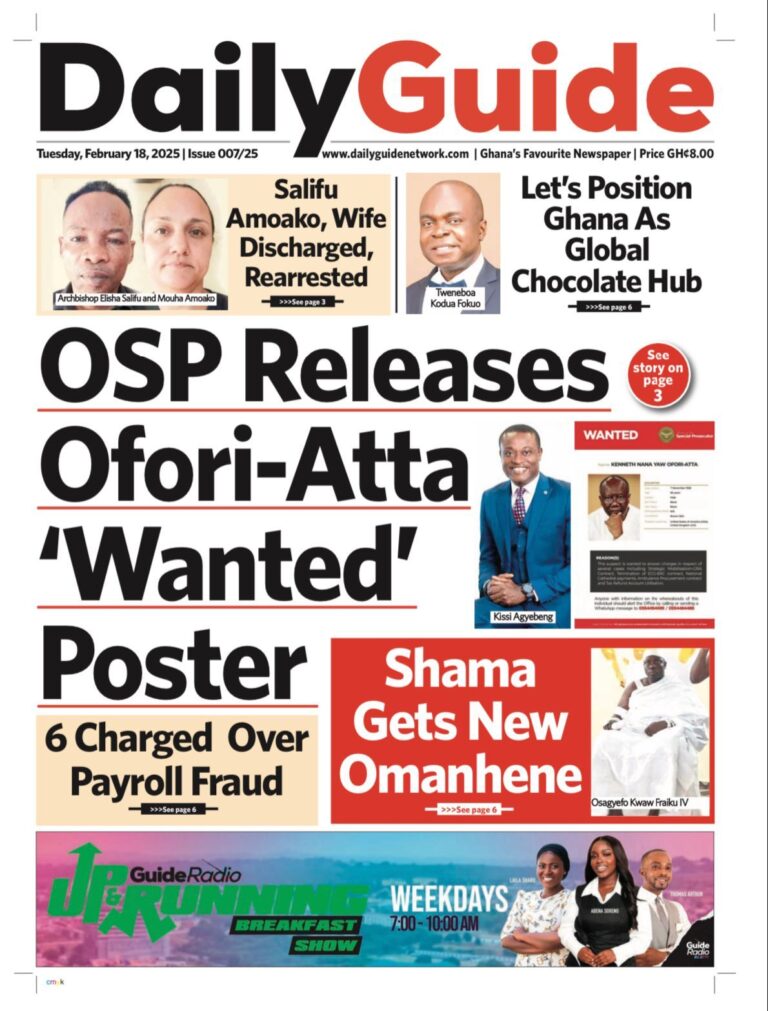 Headlines of major news items, as captured on the front pages of newspapers. <a href="https://myrepubliconline.com/newspaper-headlines-tuesday-february-18-2025/graphic-56/" rel="attachment wp-att-108879"><img class="alignnone size-full wp-image-108879" src="https://myrepubliconline.com/wp-content/uploads/2025/02/graphic-4.jpg" alt="" width="1000" height="1318" /></a> <a href="https://myrepubliconline.com/newspaper-headlines-tuesday-february-18-2025/enquirer-6/" rel="attachment wp-att-108878"><img class="alignnone size-full wp-image-108878" src="https://myrepubliconline.com/wp-content/uploads/2025/02/Enquirer-1.jpg" alt="" width="1200" height="1600" /></a><a href="https://myrepubliconline.com/newspaper-headlines-tuesday-february-18-2025/bft-15/" rel="attachment wp-att-108885"><img class="alignnone size-full wp-image-108885" src="https://myrepubliconline.com/wp-content/uploads/2025/02/BFT-6.jpg" alt="" width="909" height="1280" /></a><a href="https://myrepubliconline.com/newspaper-headlines-tuesday-february-18-2025/metrolens-3/" rel="attachment wp-att-108886"><img class="alignnone size-full wp-image-108886" src="https://myrepubliconline.com/wp-content/uploads/2025/02/Metrolens.jpg" alt="" width="1124" height="1600" /></a> <a href="https://myrepubliconline.com/newspaper-headlines-tuesday-february-18-2025/business-analyst/" rel="attachment wp-att-108874"><img class="alignnone size-full wp-image-108874" src="https://myrepubliconline.com/wp-content/uploads/2025/02/Business-Analyst.jpg" alt="" width="904" height="1280" /></a> <a href="https://myrepubliconline.com/newspaper-headlines-tuesday-february-18-2025/daily-searchlight-tuesday/" rel="attachment wp-att-108877"><img class="alignnone size-full wp-image-108877" src="https://myrepubliconline.com/wp-content/uploads/2025/02/Daily-Searchlight-Tuesday.jpg" alt="" width="763" height="1080" /></a> <a href="https://myrepubliconline.com/newspaper-headlines-tuesday-february-18-2025/daily-banner/" rel="attachment wp-att-108876"><img class="alignnone size-full wp-image-108876" src="https://myrepubliconline.com/wp-content/uploads/2025/02/Daily-Banner.jpg" alt="" width="1132" height="1600" /></a> <a href="https://myrepubliconline.com/newspaper-headlines-tuesday-february-18-2025/patriot/" rel="attachment wp-att-108880"><img class="alignnone size-full wp-image-108880" src="https://myrepubliconline.com/wp-content/uploads/2025/02/Patriot.jpg" alt="" width="763" height="1080" /></a> <a href="https://myrepubliconline.com/newspaper-headlines-tuesday-february-18-2025/business-6/" rel="attachment wp-att-108875"><img class="alignnone size-full wp-image-108875" src="https://myrepubliconline.com/wp-content/uploads/2025/02/business.jpg" alt="" width="1000" height="1318" /></a><a href="https://myrepubliconline.com/newspaper-headlines-tuesday-february-18-2025/daily-times/" rel="attachment wp-att-108888"><img class="alignnone size-full wp-image-108888" src="https://myrepubliconline.com/wp-content/uploads/2025/02/daily-times.jpg" alt="" width="800" height="1017" /></a><a href="https://myrepubliconline.com/newspaper-headlines-tuesday-february-18-2025/crusading-guide5555911703688019889/" rel="attachment wp-att-108890"><img class="alignnone size-full wp-image-108890" src="https://myrepubliconline.com/wp-content/uploads/2025/02/crusading-guide5555911703688019889.jpg" alt="" width="538" height="648" /></a><a href="https://myrepubliconline.com/newspaper-headlines-tuesday-february-18-2025/despatch4557956748870110117/" rel="attachment wp-att-108891"><img class="alignnone size-full wp-image-108891" src="https://myrepubliconline.com/wp-content/uploads/2025/02/despatch4557956748870110117.jpg" alt="" width="522" height="648" /></a><a href="https://myrepubliconline.com/newspaper-headlines-tuesday-february-18-2025/punch1363260428924801634/" rel="attachment wp-att-108892"><img class="alignnone size-full wp-image-108892" src="https://myrepubliconline.com/wp-content/uploads/2025/02/punch1363260428924801634.jpg" alt="" width="525" height="640" /></a><a href="https://myrepubliconline.com/newspaper-headlines-tuesday-february-18-2025/hawk8256505263614905287/" rel="attachment wp-att-108893"><img class="alignnone size-full wp-image-108893" src="https://myrepubliconline.com/wp-content/uploads/2025/02/hawk8256505263614905287.jpg" alt="" width="479" height="640" /></a><a href="https://myrepubliconline.com/newspaper-headlines-tuesday-february-18-2025/gkdf1xjwiaavedc-768x1011/" rel="attachment wp-att-108895"><img class="alignnone size-full wp-image-108895" src="https://myrepubliconline.com/wp-content/uploads/2025/02/GkDF1XjWIAAvEDc-768x1011-1.jpeg" alt="" width="768" height="1011" /></a>