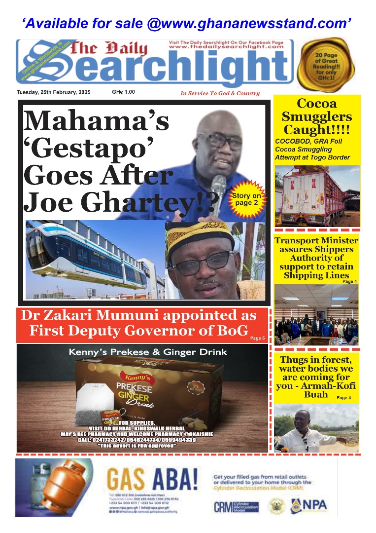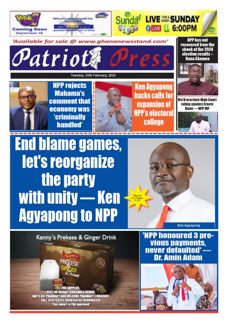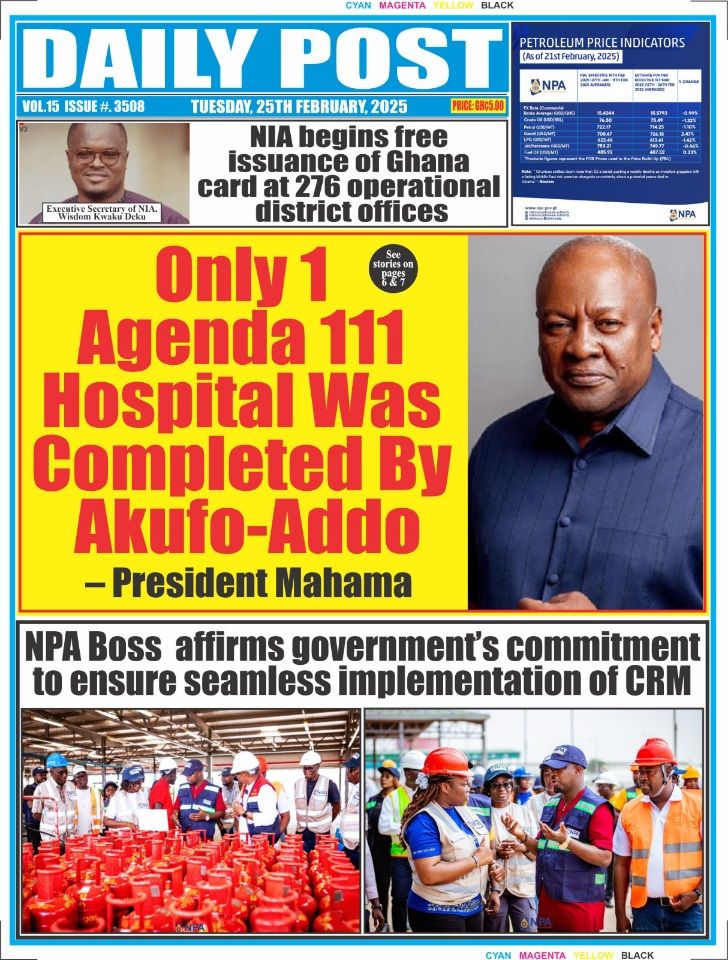 Headlines of major news items, as captured on the front pages of newspapers. <a href="https://myrepubliconline.com/newspaper-headlines-tuesday-february-25-2025/7qa4kuyfokyurbatviqvfwwg0dzsyj22itdm1ixc-thumbnail/" rel="attachment wp-att-109353"><img class="alignnone size-full wp-image-109353" src="https://myrepubliconline.com/wp-content/uploads/2025/02/7qA4KUyfOKyUrBATVIqVfWwg0DzsYJ22itDm1IXC-thumbnail.jpg" alt="" width="1000" height="1318" /></a> <a href="https://myrepubliconline.com/newspaper-headlines-tuesday-february-25-2025/tabsgbou8kaccgago5y4msomlfkghofmeketvzta-thumbnail/" rel="attachment wp-att-109355"><img class="alignnone size-full wp-image-109355" src="https://myrepubliconline.com/wp-content/uploads/2025/02/TaBSGBou8KacCgaGo5Y4mSoMLFkGHOFMEkEtvzTa-thumbnail.jpg" alt="" width="1000" height="1318" /></a><a href="https://myrepubliconline.com/newspaper-headlines-tuesday-february-25-2025/banner-4/" rel="attachment wp-att-109360"><img class="alignnone size-full wp-image-109360" src="https://myrepubliconline.com/wp-content/uploads/2025/02/Banner-3.jpg" alt="" width="1132" height="1600" /></a><a href="https://myrepubliconline.com/newspaper-headlines-tuesday-february-25-2025/business-analyst-tuesday-2-5/" rel="attachment wp-att-109361"><img class="alignnone size-full wp-image-109361" src="https://myrepubliconline.com/wp-content/uploads/2025/02/Business-Analyst-tuesday-2.jpg" alt="" width="877" height="1241" /></a><a href="https://myrepubliconline.com/newspaper-headlines-tuesday-february-25-2025/enquirer-7/" rel="attachment wp-att-109362"><img class="alignnone size-full wp-image-109362" src="https://myrepubliconline.com/wp-content/uploads/2025/02/Enquirer-2.jpg" alt="" width="1194" height="1600" /></a><a href="https://myrepubliconline.com/newspaper-headlines-tuesday-february-25-2025/metro-lens-8/" rel="attachment wp-att-109363"><img class="alignnone size-full wp-image-109363" src="https://myrepubliconline.com/wp-content/uploads/2025/02/metro-lens.jpg" alt="" width="758" height="1080" /></a><a href="https://myrepubliconline.com/newspaper-headlines-tuesday-february-25-2025/patriot-2/" rel="attachment wp-att-109364"><img class="alignnone size-full wp-image-109364" src="https://myrepubliconline.com/wp-content/uploads/2025/02/Patriot-1.jpg" alt="" width="763" height="1080" /></a><a href="https://myrepubliconline.com/newspaper-headlines-tuesday-february-25-2025/ghanaian-publisher7716929936064114309/" rel="attachment wp-att-109368"><img class="alignnone size-full wp-image-109368" src="https://myrepubliconline.com/wp-content/uploads/2025/02/ghanaian-publisher7716929936064114309.jpg" alt="" width="646" height="864" /></a><a href="https://myrepubliconline.com/newspaper-headlines-tuesday-february-25-2025/daily-guide5758627953557794857/" rel="attachment wp-att-109369"><img class="alignnone size-full wp-image-109369" src="https://myrepubliconline.com/wp-content/uploads/2025/02/daily-guide5758627953557794857.jpg" alt="" width="649" height="864" /></a><a href="https://myrepubliconline.com/newspaper-headlines-tuesday-february-25-2025/chronicle81142684598325546/" rel="attachment wp-att-109370"><img class="alignnone size-full wp-image-109370" src="https://myrepubliconline.com/wp-content/uploads/2025/02/chronicle81142684598325546.jpg" alt="" width="747" height="960" /></a><a href="https://myrepubliconline.com/newspaper-headlines-tuesday-february-25-2025/times9206282305598764004/" rel="attachment wp-att-109371"><img class="alignnone size-full wp-image-109371" src="https://myrepubliconline.com/wp-content/uploads/2025/02/times9206282305598764004.jpg" alt="" width="719" height="787" /></a><a href="https://myrepubliconline.com/newspaper-headlines-tuesday-february-25-2025/crusading-guide1917948953612433615-750x914/" rel="attachment wp-att-109372"><img class="alignnone size-full wp-image-109372" src="https://myrepubliconline.com/wp-content/uploads/2025/02/crusading-guide1917948953612433615-750x914-1.jpg" alt="" width="750" height="914" /></a><a href="https://myrepubliconline.com/newspaper-headlines-tuesday-february-25-2025/hawk3615693247284924766/" rel="attachment wp-att-109373"><img class="alignnone size-full wp-image-109373" src="https://myrepubliconline.com/wp-content/uploads/2025/02/hawk3615693247284924766.jpg" alt="" width="718" height="960" /></a><a href="https://myrepubliconline.com/newspaper-headlines-tuesday-february-25-2025/overseer3989675861178099975/" rel="attachment wp-att-109374"><img class="alignnone size-full wp-image-109374" src="https://myrepubliconline.com/wp-content/uploads/2025/02/overseer3989675861178099975.jpg" alt="" width="684" height="864" /></a><a href="https://myrepubliconline.com/newspaper-headlines-tuesday-february-25-2025/daily-post2926771931841138973/" rel="attachment wp-att-109375"><img class="alignnone size-full wp-image-109375" src="https://myrepubliconline.com/wp-content/uploads/2025/02/daily-post2926771931841138973.jpg" alt="" width="728" height="960" /></a><a href="https://myrepubliconline.com/newspaper-headlines-tuesday-february-25-2025/daybreak-1/" rel="attachment wp-att-109376"><img class="alignnone size-full wp-image-109376" src="https://myrepubliconline.com/wp-content/uploads/2025/02/daybreak-1.jpg" alt="" width="724" height="1024" /></a><a href="https://myrepubliconline.com/newspaper-headlines-tuesday-february-25-2025/search-9/" rel="attachment wp-att-109365"><img class="alignnone size-full wp-image-109365" src="https://myrepubliconline.com/wp-content/uploads/2025/02/search-4.jpg" alt="" width="763" height="1080" /></a><a href="https://myrepubliconline.com/newspaper-headlines-tuesday-february-25-2025/the-state/" rel="attachment wp-att-109366"><img class="alignnone size-full wp-image-109366" src="https://myrepubliconline.com/wp-content/uploads/2025/02/The-state.jpg" alt="" width="1137" height="1600" /></a> <a href="https://myrepubliconline.com/newspaper-headlines-tuesday-february-25-2025/fbfb86cf-af78-4815-949c-6c09da91fba9/" rel="attachment wp-att-109354"><img class="a