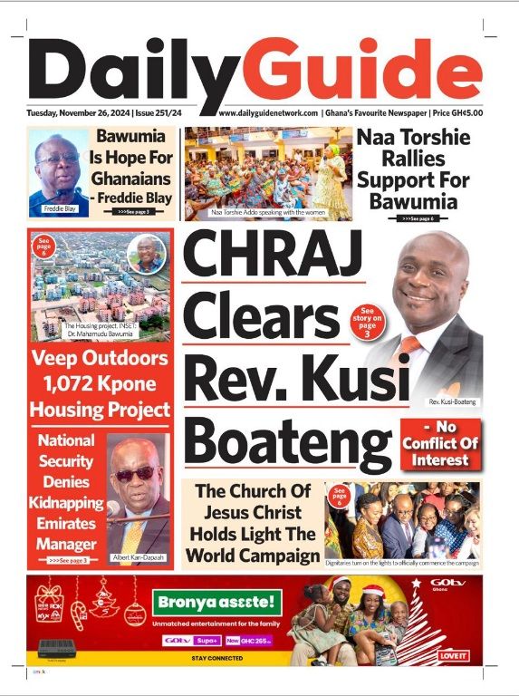 Headlines of major news items, as captured on the front pages of newspapers. <a href="https://myrepubliconline.com/newspaper-headlines-tuesday-november-26-2024/business-analyst-tuesday-3-2/" rel="attachment wp-att-103732"><img class="alignnone size-full wp-image-103732" src="https://myrepubliconline.com/wp-content/uploads/2024/11/Business-Analyst-tuesday-3.jpg" alt="" width="742" height="1029" /></a> <a href="https://myrepubliconline.com/newspaper-headlines-tuesday-november-26-2024/grap-2/" rel="attachment wp-att-103733"><img class="alignnone size-full wp-image-103733" src="https://myrepubliconline.com/wp-content/uploads/2024/11/Grap.jpg" alt="" width="1000" height="1318" /></a> <a href="https://myrepubliconline.com/newspaper-headlines-tuesday-november-26-2024/img-20241125-wa0430-660x917/" rel="attachment wp-att-103734"><img class="alignnone size-full wp-image-103734" src="https://myrepubliconline.com/wp-content/uploads/2024/11/IMG-20241125-WA0430-660x917-1.jpg" alt="" width="660" height="917" /></a><a href="https://myrepubliconline.com/newspaper-headlines-tuesday-november-26-2024/overseer8275652593463209079/" rel="attachment wp-att-103741"><img class="alignnone size-full wp-image-103741" src="https://myrepubliconline.com/wp-content/uploads/2024/11/overseer8275652593463209079.jpg" alt="" width="513" height="648" /></a><a href="https://myrepubliconline.com/newspaper-headlines-tuesday-november-26-2024/day-break4225794567781319280/" rel="attachment wp-att-103742"><img class="alignnone size-full wp-image-103742" src="https://myrepubliconline.com/wp-content/uploads/2024/11/day-break4225794567781319280.jpg" alt="" width="452" height="640" /></a><a href="https://myrepubliconline.com/newspaper-headlines-tuesday-november-26-2024/enquirer6054836411395754986/" rel="attachment wp-att-103743"><img class="alignnone size-full wp-image-103743" src="https://myrepubliconline.com/wp-content/uploads/2024/11/enquirer6054836411395754986.jpg" alt="" width="456" height="640" /></a><a href="https://myrepubliconline.com/newspaper-headlines-tuesday-november-26-2024/anchor7712463215632996380/" rel="attachment wp-att-103744"><img class="alignnone size-full wp-image-103744" src="https://myrepubliconline.com/wp-content/uploads/2024/11/anchor7712463215632996380.jpg" alt="" width="499" height="648" /></a><a href="https://myrepubliconline.com/newspaper-headlines-tuesday-november-26-2024/daily-post3252965016388489565/" rel="attachment wp-att-103745"><img class="alignnone size-full wp-image-103745" src="https://myrepubliconline.com/wp-content/uploads/2024/11/daily-post3252965016388489565.jpg" alt="" width="485" height="640" /></a><a href="https://myrepubliconline.com/newspaper-headlines-tuesday-november-26-2024/daily-democrat1293614045950579223/" rel="attachment wp-att-103746"><img class="alignnone size-full wp-image-103746" src="https://myrepubliconline.com/wp-content/uploads/2024/11/daily-democrat1293614045950579223.jpg" alt="" width="496" height="648" /></a><a href="https://myrepubliconline.com/newspaper-headlines-tuesday-november-26-2024/finder4680521894564126362/" rel="attachment wp-att-103747"><img class="alignnone size-full wp-image-103747" src="https://myrepubliconline.com/wp-content/uploads/2024/11/finder4680521894564126362.jpg" alt="" width="486" height="640" /></a><a href="https://myrepubliconline.com/newspaper-headlines-tuesday-november-26-2024/crusading-guide6144520233256068302/" rel="attachment wp-att-103748"><img class="alignnone size-full wp-image-103748" src="https://myrepubliconline.com/wp-content/uploads/2024/11/crusading-guide6144520233256068302.jpg" alt="" width="426" height="512" /></a><a href="https://myrepubliconline.com/newspaper-headlines-tuesday-november-26-2024/despatch2313310571503152258/" rel="attachment wp-att-103749"><img class="alignnone size-full wp-image-103749" src="https://myrepubliconline.com/wp-content/uploads/2024/11/despatch2313310571503152258.jpg" alt="" width="522" height="648" /></a><a href="https://myrepubliconline.com/newspaper-headlines-tuesday-november-26-2024/chronicle2894530816198710682/" rel="attachment wp-att-103750"><img class="alignnone size-full wp-image-103750" src="https://myrepubliconline.com/wp-content/uploads/2024/11/chronicle2894530816198710682.jpg" alt="" width="498" height="640" /></a><a href="https://myrepubliconline.com/newspaper-headlines-tuesday-november-26-2024/daily-guide4329078970156324312/" rel="attachment wp-att-103751"><img class="alignnone size-full wp-image-103751" src="https://myrepubliconline.com/wp-content/uploads/2024/11/daily-guide4329078970156324312.jpg" alt="" width="573" height="768" /></a> <a href="https://myrepubliconline.com/newspaper-headlines-tuesday-november-26-2024/img-20241126-wa0026/" rel="attachment wp-att-103735"><img class="alignnone size-full wp-image-103735" src="https://myrepubliconline.com/wp-content/uploads/2024/11/IMG-20241126-WA0026.jpg" alt="" width="763" height="1080" /></a> <a href="https://myrepubliconline.com/newspaper-headlines-tuesday-november-26-2024/img-20241126-wa0052/" rel="attachment wp-att-103736"><img class="alignnone size-full wp-image-103736" src="https://myrepubliconline.com/wp-content/uploads/2024/11/IMG-20241126-WA0052.jpg" alt="" width="763" height="1080" /></a> <a href="https://myrepubliconline.com/newspaper-headlines-tuesday-november-26-2024/qccdx6bmfsdazulzasi0veutxr64iujyoyewpans-thumbnail/" rel="attachment wp-att-103737"><img class="alignnone size-full wp-image-103737" src="https://myrepubliconline.com/wp-content/uploads/2024/11/QccdX6BMfsDAZuLzAsI0VEUTXR64IuJyoYEwPaNs-thumbnail.jpg" alt="" width="1000" height="1318" /></a>